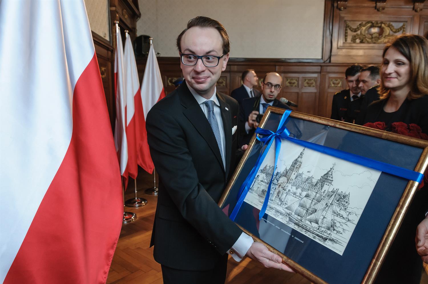 - Rok i pięć miesięcy minęło, kiedy miałem wielki zaszczyt i honor stanąć tutaj, u stóp gmachu Zachodniopomorskiego Urzędu Wojewódzkiego, u stóp gmachu rządu Rzeczypospolitej i odebrać z rąk ówczesnego ministra spraw wewnętrznych i administracji Mariusza Błaszczaka nominację na urząd wojewody zachodniopomorskiego - mówił wiceminister Kozłowski. - Bez wątpienia ten urząd na zawsze pozostanie w moim sercu jako czas niezwykle szczęśliwy i zaszczytny. Był to czas, kiedy mogłem służyć mieszkańcom Pomorza Zachodniego jako przedstawiciel rządu w terenie. W tym okresie udało się załatwić i zbudować podwaliny do realizacji spraw, o których wspomniał wojewoda Subocz. To w żadnej mierze nie jest moja zasługa. Jest to zasługa Rady Ministrów Rządu Rzeczypospolitej, administracji rządowej i wszystkich państwa.