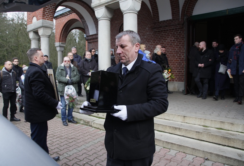 O 14.30 urna z prochami została wystawiona w kaplicy głównej, po czym kondukt żałobny udał się do miejsca spoczynku Zmarłego. Przy mogile w imieniu prezydenta Piotra Krzystka głos zabrał wiceprezydent Szczecina Krzysztof Soska, który podziękował za zaangażowanie na rzecz miasta, imprezy organizowane przez "Kurier Szczeciński" i misję jaką wypełnia gazeta. Zmarłego żegnał też zastępca red. nacz. "Kuriera Szczecińskiego" Andrzej Łapkiewicz, który zwrócił uwagę, że praktycznie całe zawodowe życie Zmarłego było związane z gazetą. Zaczynał w niej jako stażysta, a ostatnie dziesięć lat był Redaktorem Naczelnym.