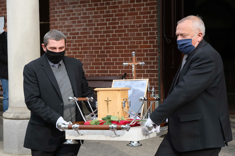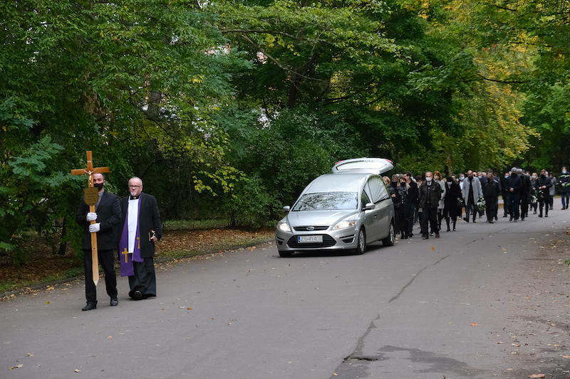 Po Mszy Świętej ostatnie pożegnanie odbyło się na szczecińskim Cmentarzu Centralnym, a rodzina, przyjaciele i czytelnicy odprowadzili zmarłego w pieszej procesji na miejsce spoczynku.