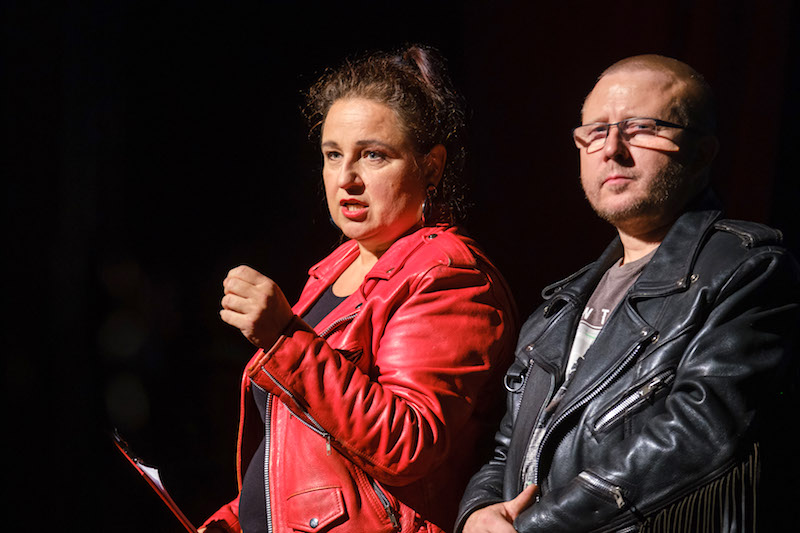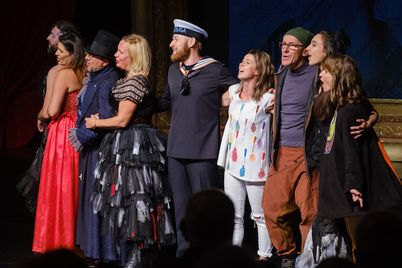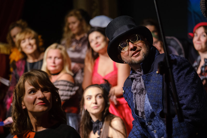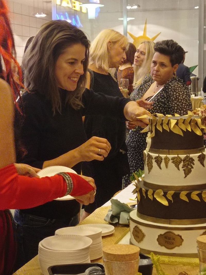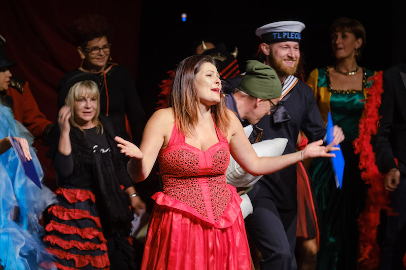Niezwykła była część artystyczna pożegnania, bowiem na scenie wystąpili nie tylko aktorzy, ale też inni pracownicy (tak, tak!), choćby panie z biura obsługi widza, sekretariatu czy działu administracyjno - gospodarczego. Były zatem wspomnienia z dawnych lat, choćby czas przyjazdu - w 1980 roku - młodych aktorów z Podlasia do Szczecina, Barbary i Zbigniewa Niecikowskich, ale i te całkiem świeże, a także nieco anegdot z życia teatru. No i był piękny (a jaki pyszny!) tort, dzieło aktorki Pauliny Lenart - Majtas. Na parterze tego ciasta artystka umieściła tytuły spektakli, które wyreżyserował Zbigniew Niecikowski, a na ostatnim piętrze - dwa kierunkowskazy: Szczecin i Wasilków. Ta druga miejscowość to miejsce na Podlasiu, gdzie teraz zamieszka dyrektor Pleciugi wraz z małżonką.