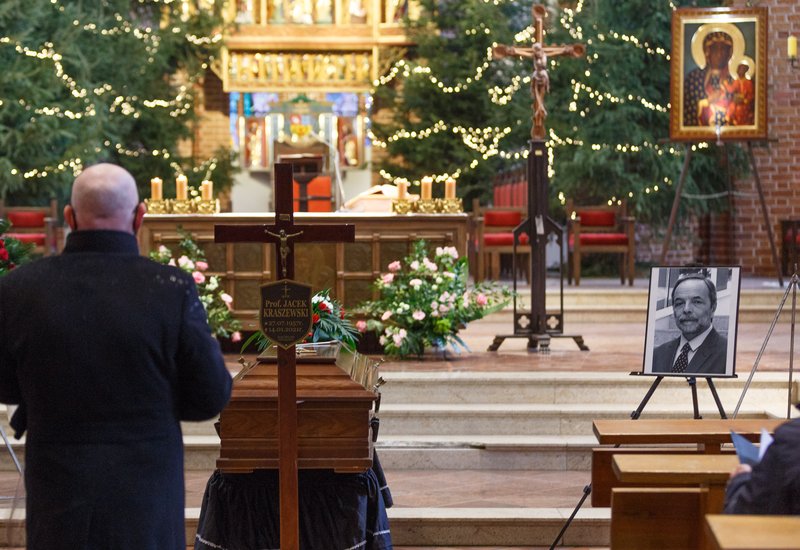 - Każdy utwór jest zamknięty w formę, każdy ma jakiś temat, każdy ma przeprowadzenie tych tematów jako zabawę, by ostatecznie wyłoniło się przepiękne dzieło, mające swoją kulminację i kadencję. I są w każdej formie muzycznej znaki przykluczowe, znaki określające realizację dzieła, które Jacek jako profesor doskonale interpretował. Mogliśmy przepięknie uczestniczyć w jego wielorakich koncertach, mogliśmy wsłuchiwać się w te sploty akordów zawsze rozwiązujące się przepiękną, pełną wyczucia kadencję - mówił ks. Zbigniew Woźniak, przyjaciel Zmarłego, podczas mszy pogrzebowej. - Tak też przyjmował swoje życie, swoje powołanie, swoją misję jako muzyk, jako profesor, jako człowiek żyjący dla społeczności i w społeczności. Kiedy unosił batutę, czy to pośród Słowików czy przed swoją orkiestrą, wszyscy w skupieniu wpatrywali się w jego każdy, najmniejszy dyrygencki gest. Panie, nasz stwórco i Boże, przyjmij świętej pamięci Jacka, naszego profesora, do grona śpiewających i dyrygujących symfonią niebiańską - usłyszeli zgromadzeni w kościele.