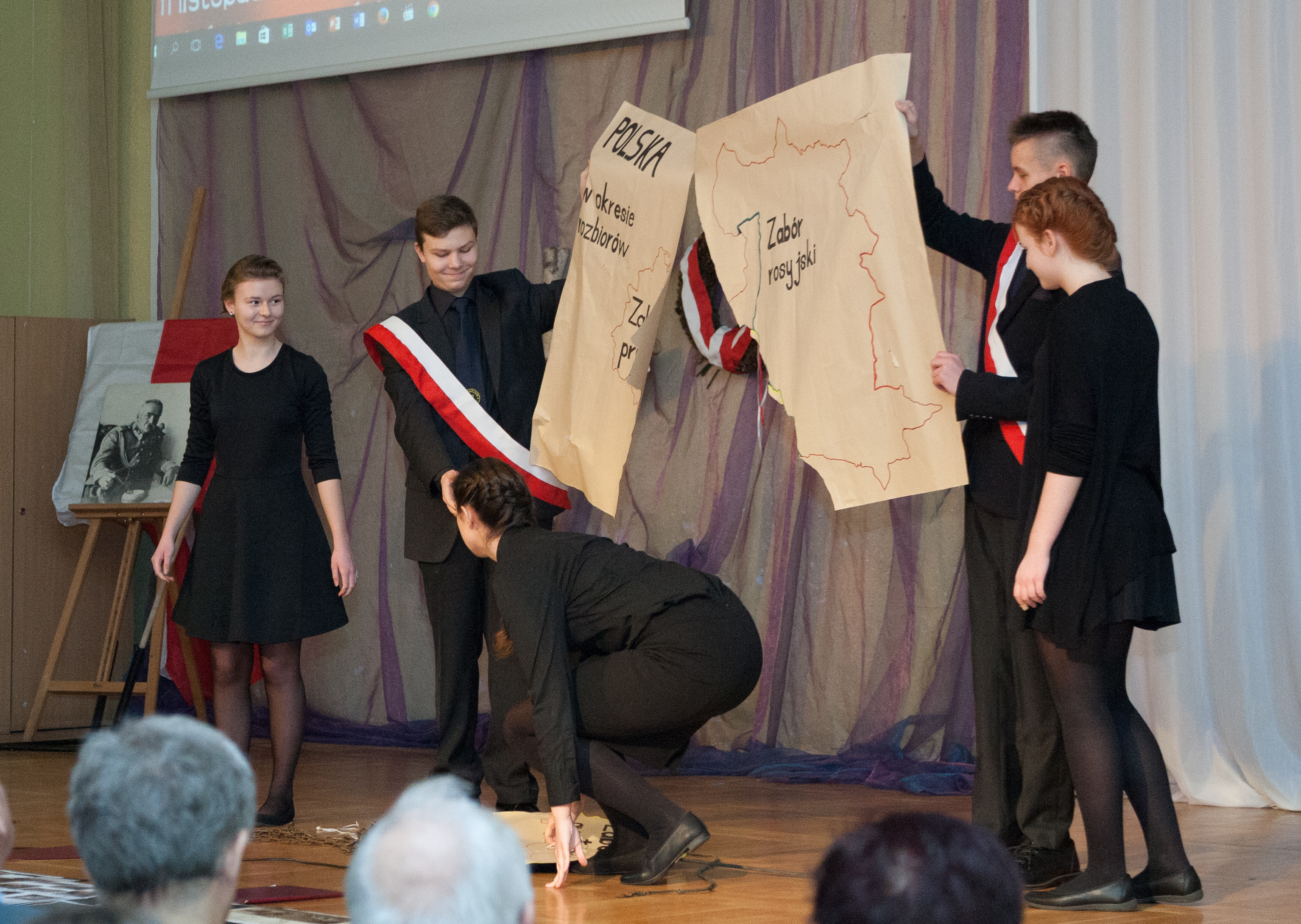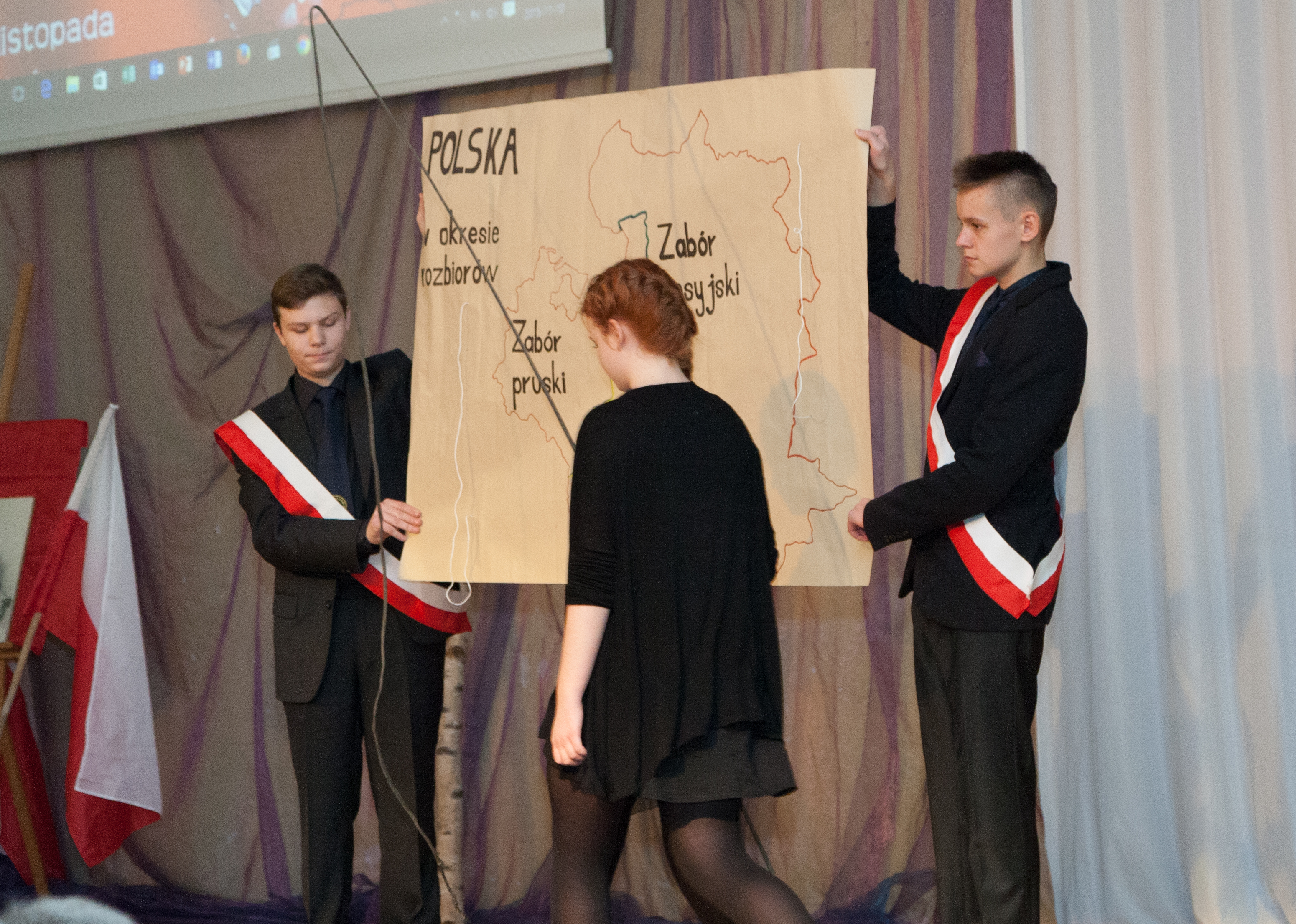Dzięki niej gimnazjaliści dowiedzieli się jakie było ówczesne terytorium i ludność Polski oraz jak rozwijała się oświata, literatura, nauka, radio i film polski. Poznali także osiągnięciach sportowe i modę dwudziestolecia międzywojennego. Z okazji 97. rocznicy odzyskania niepodległości przez Polskę w Gimnazjum nr 12 odbyła się także uroczysta akademia z udziałem przedstawicieli Związku Piłsudczyków RP Oddział Szczecin, którzy zaprezentowali własną wystawę pamiątek z okresu Legionów Polskich.