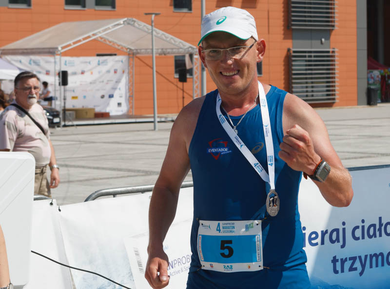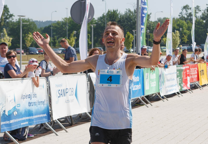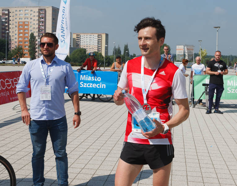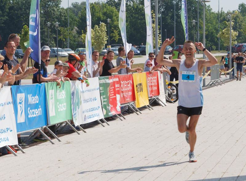 Około pół tysiąca biegaczy wystartowało o godz. 8 z Polic przy ul. Bursztynowej (na wysokości kompleksu sportowo-rekreacyjnego). Meta czekała na nich przy szczecińskiej hali Netto Arena. Biegacze mieli do pokonania 42 kilometry 195 metrów w niesamowitym upale po ulicach, leśnych duktach i ścieżkach rowerowych. Przed godz. 11 na miejscu pojawili się pierwsi trzej zawodnicy. Zwycięzcą został Rafał Czarnecki z Bliżyna, drugie miejsce zajął Zbigniew Kalinowski policzanin mieszkający w Częstochowie a trzecie Piotr Stachyra z Jaworzna.
