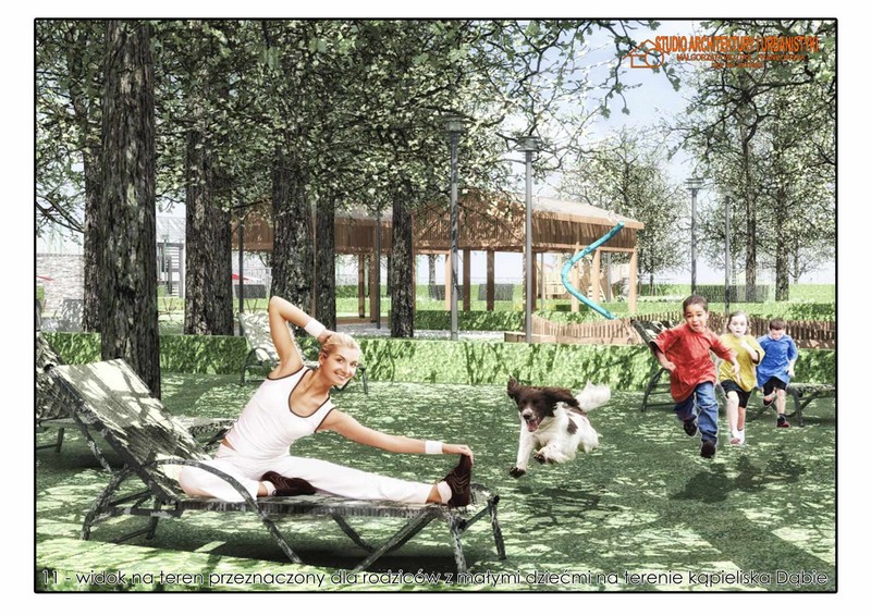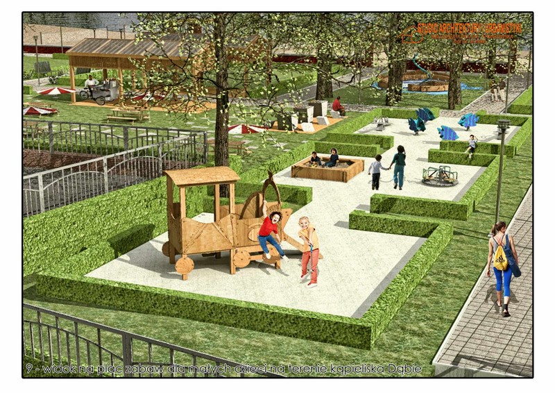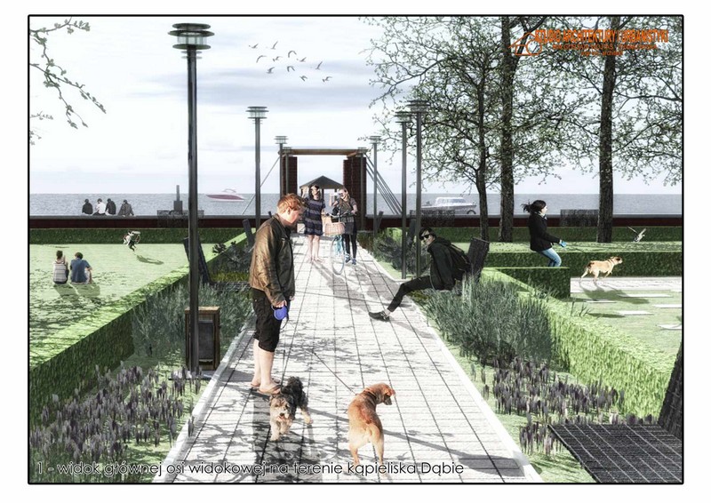 Przy plaży piknikowe wiaty, grille i wielkie ogrodowe parasole. Także pośród zieleni place zabaw, w tym wodne zabawki dla najmłodszych. Do tego zmodernizowane aleje, oświetlenie, mnóstwo ławek i miejsc do uprawiania aktywnej rekreacji, choćby jogi. Całość oświetlona, skanalizowana. Samo wejście na plażę miało prowadzić letników pod efektowną ceglaną pergolą - podobną tej z Ogrodu Różanego - porośniętą pnączami. Za nią miał kusić czysty piasek z panoramicznym widokiem na wodę, przyjazny pomost z niepowtarzalną wodną altaną, a na lądzie - plażowe prysznice. Tak miało - jak na wizualizacjach - wyglądać kąpielisko w Dąbiu. Już latem ubiegłego roku. Że nie wyglądało nawet w tym - wszyscy wiemy.
