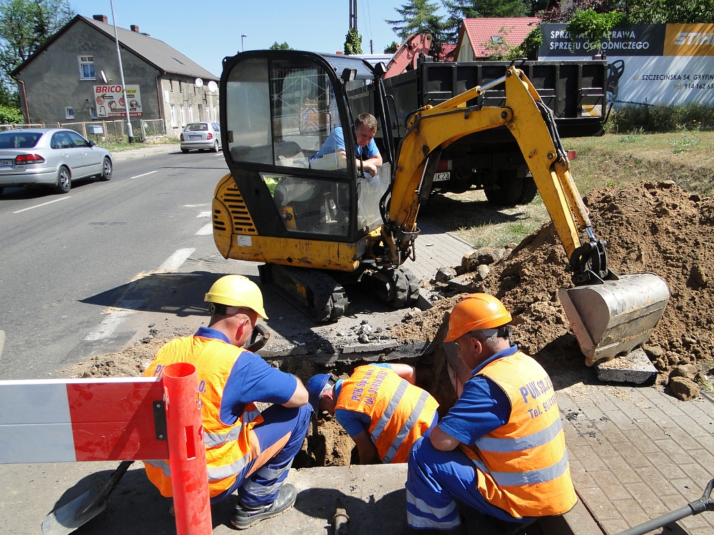 Od dziś (7 bm.) wymieniane są zasuwy od przyłączy wody na ulicy Szczecińskiej w Gryfinie. Prace związane są z planowaną od lipca jej przebudową. GDDKiA modernizuje fragment drogi krajowej nr 31 o długości 1,67 km, obejmujący ulice: Szczecińską oraz Bolesława Chrobrego. Zanim wejdzie wykonawca robót budowlanych (zamówienia udzielono firmie STRABAG Sp. z o.o.), który m.in. wymieni warstwę ścieralną nawierzchni, pracownicy miejscowego Przedsiębiorstwo Usług Komunalnych wymienią na ulicy Szczecińskiej ok. 40 starych zaworów.