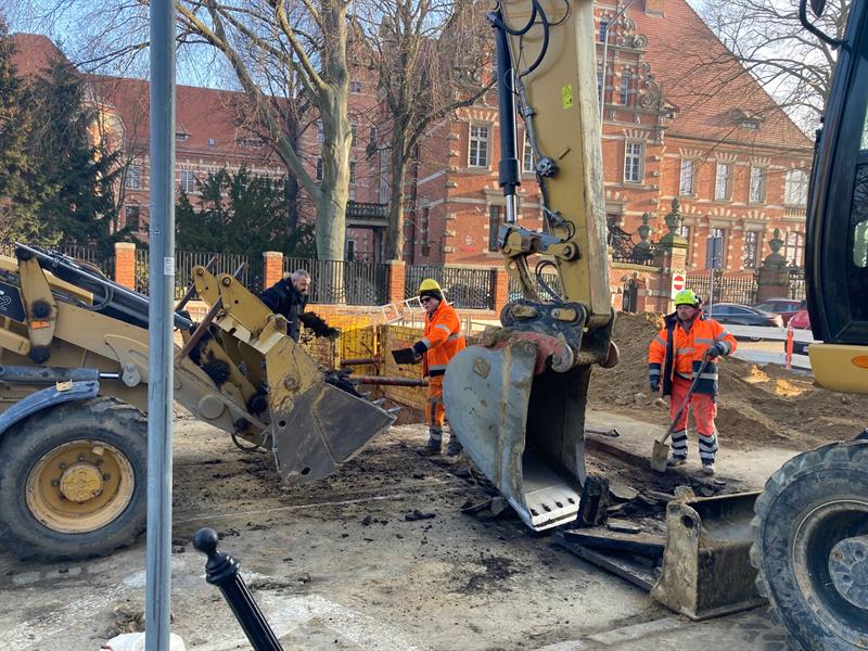 Co najmniej kilka tygodni potrwają prace na ul. Szczerbcowej, gdzie wymieniana jest instalacja wodno-kanalizacyjna. Zamknięto dla ruchu pojazdów odcinek ulicy do Wałów Chrobrego. Prace zleciło Muzeum Narodowe, które się tu mieści.