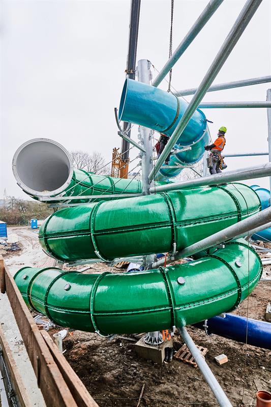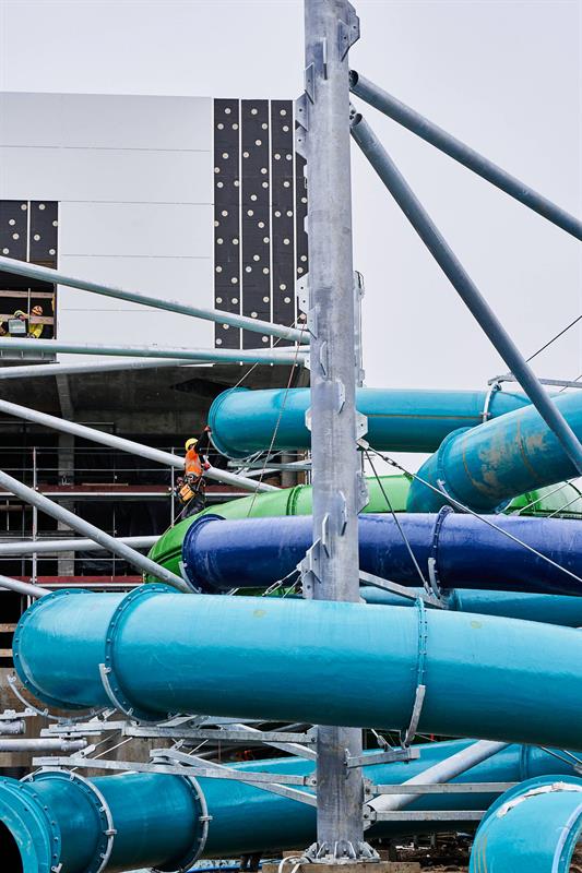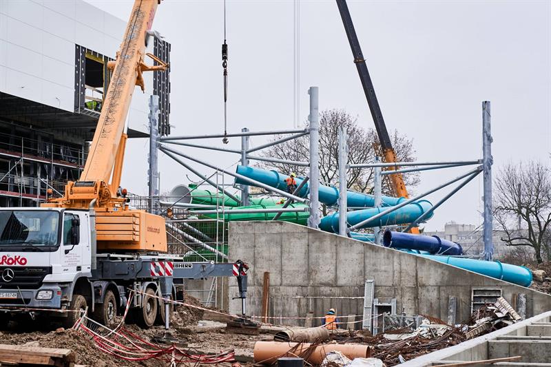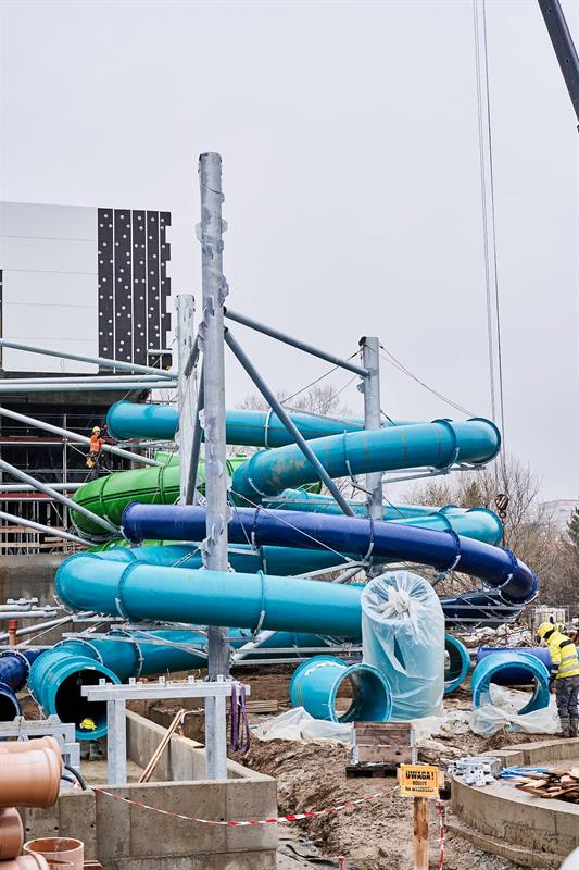 Prace w aquaparku. W Fabryce Wody montują zjeżdżalnie