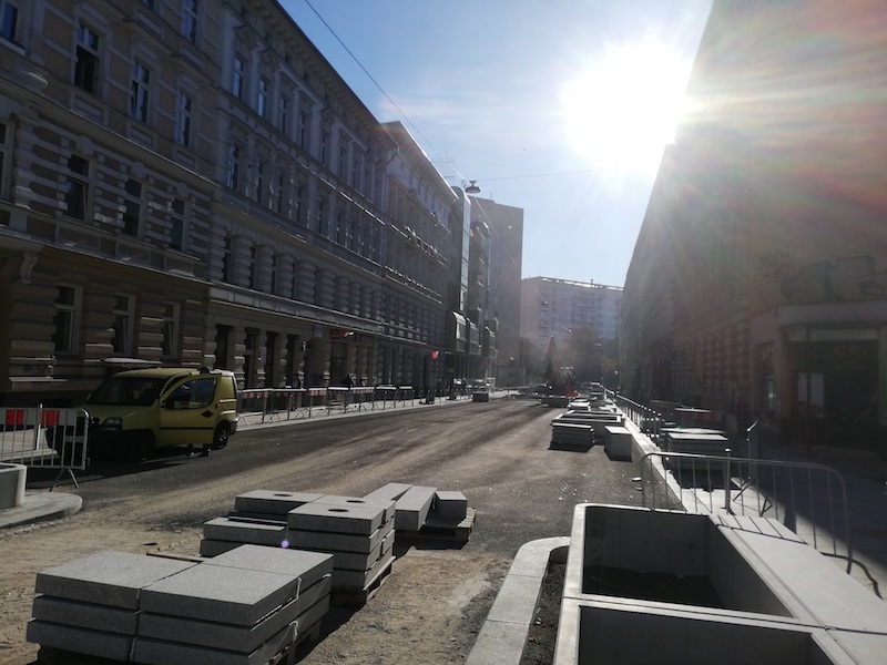 Na tych odcinkach wykonano przebudowę sieci wodociągowej, wpusty uliczne wraz z podłączeniem do kanalizacji ogólnospławnej, ustawiono krawężniki i wykonano chodniki. Położona została warstwa ścieralna, ustawiane są barierki i słupki. Równolegle wykonawca prowadzi prace brukarskie na skrzyżowaniu ul. Królowej Jadwigi z Getta Warszawskiego.