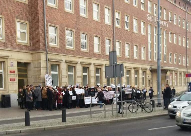 Blisko dwustu pracowników sądu protestowało w czwartek przed siedzibą Sądu Rejonowego Szczecin-Prawobrzeże i Zachód przy pl. Żołnierza Polskiego w Szczecinie. Z kolei przed gmach przy ul. Kaszubskiej wyszła ponad setka osób. I tu, i tu manifestujący domagali się podwyżki wynagrodzeń.
