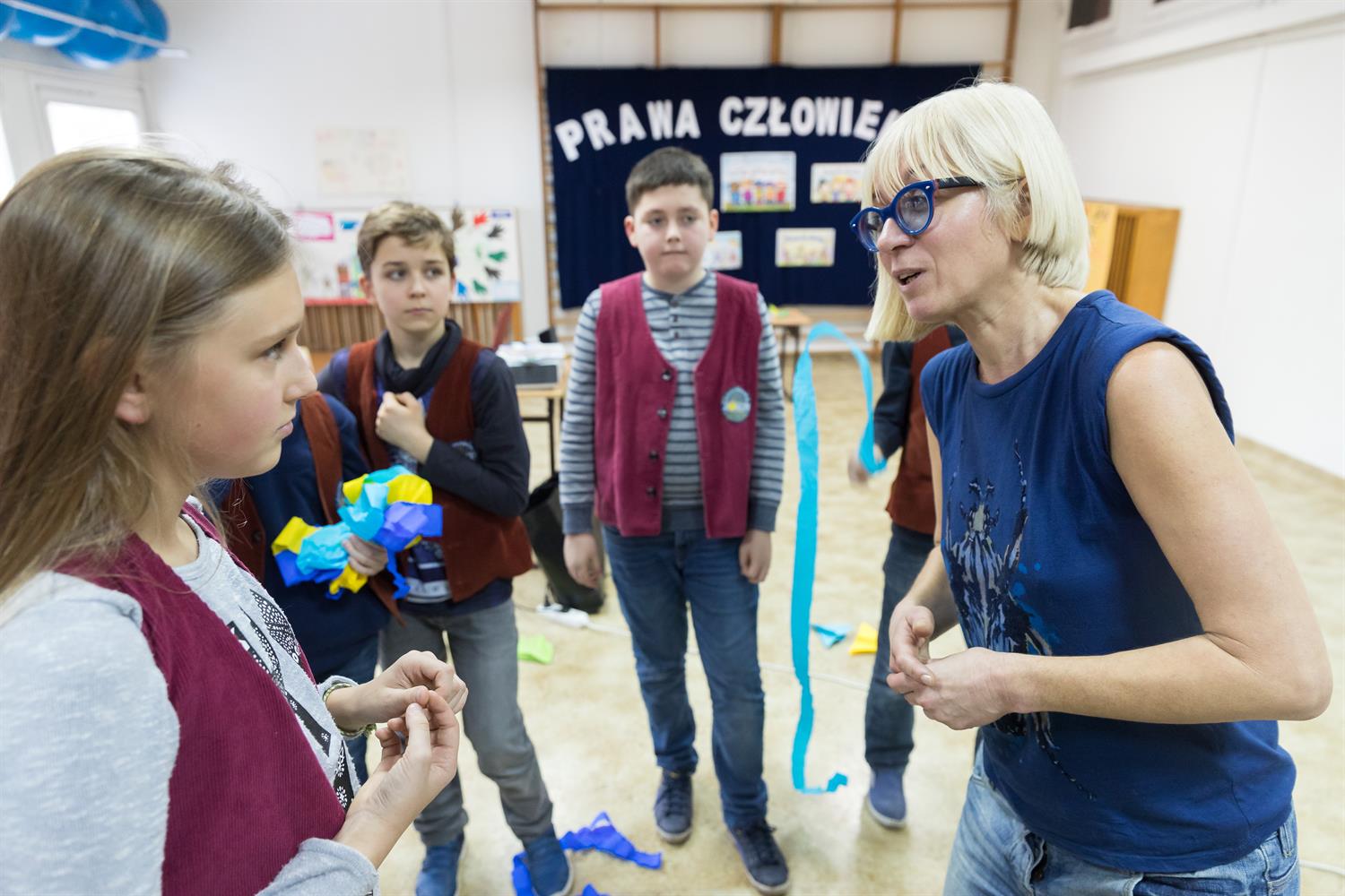 - Prawa człowieka, prawa dziecka to wasze prawo do nauki, zabawy, uśmiechu, czyli do normalnego dzieciństwa - mówiła Marina prowadząc uczniom lekcje ze wspólnym śpiewem, tańcem i zabawami, które integrują, ale też zwracają uwagę na trudną sytuację ich kolegów, żyjących w krajach wschodu: Czeczenii, Białorusi, Ukrainy.