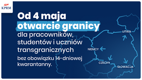 Osoby pracujące lub uczące się tuż za granicą – pracownicy, studenci i uczniowie transgraniczni, od 4 maja będą mogli wrócić do pracy i nauki; nie będą musieli przechodzić obowiązkowej, 14-dniowej kwarantanny - poinformował w czwartek na Facebooku premier Mateusz Morawiecki.