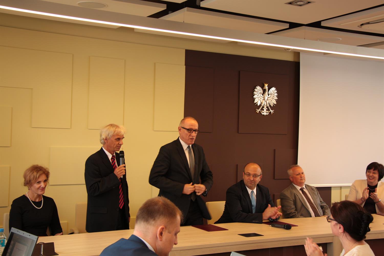 Na zdjęciu: Łukasz Piebiak, podsekretarz stanu w Ministerstwie Sprawiedliwości (klaszcze), przedstawił w piątek Zgromadzeniu Przedstawicieli Sędziów Sądu Okręgowego w Szczecinie nowego prezesa SO, sędziego Macieja Strączyńskiego (z mikrofonem w ręku). W środku Maciej Żelazowski, prezes Sądu Apelacyjnego w Szczecinie.