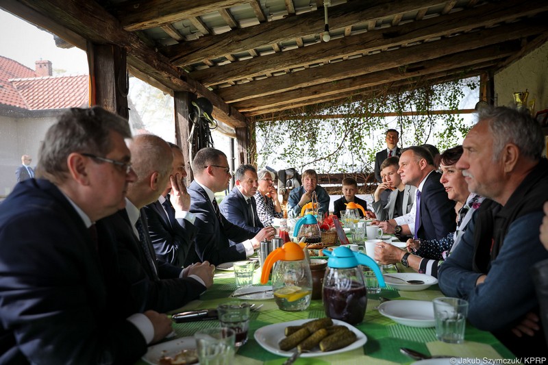 Wcześniej Andrzej Duda zwiedził przedsiębiorstwo Zielona Farma we wsi Żelimucha, zajmujące się produkcją borówki amerykańskiej. W 2016 r. jego właściciele otrzymali z rąk prezydenta RP tytuł Wicemistrza Krajowego AgroLigi.