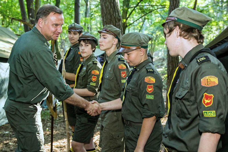 Prezydent Andrzej Duda wziął udział w apelu rozpoczynającym obóz drużyn okręgu łódzkiego Związku Harcerzy Rzeczpospolitej w Podgrodziu koło Nowego Warpna w Zachodniopomorskiem. Prezydent wysłuchał meldunku drużyn. Po podniesieniu na maszt flagi Polski odśpiewano hymn harcerski, następnie Andrzej Duda udał się do podobozów.