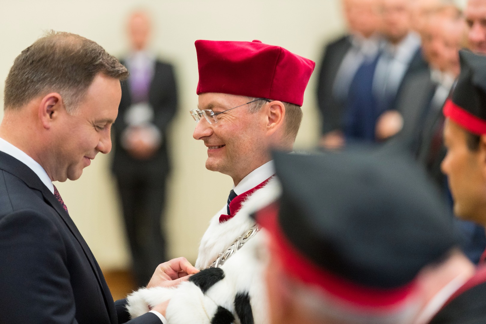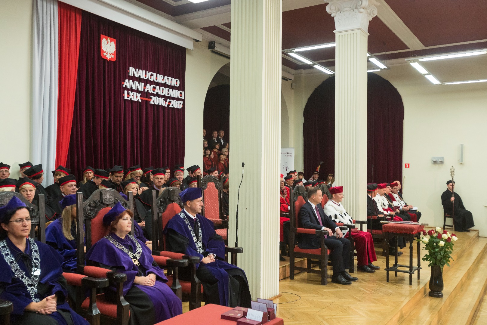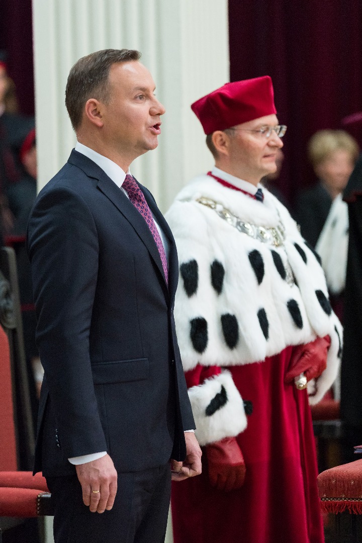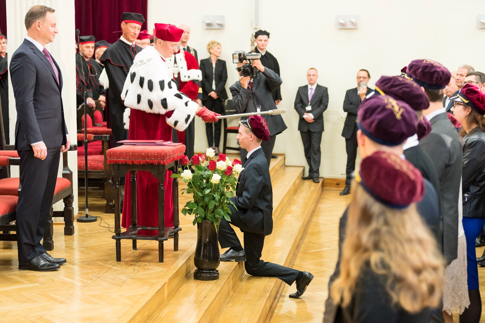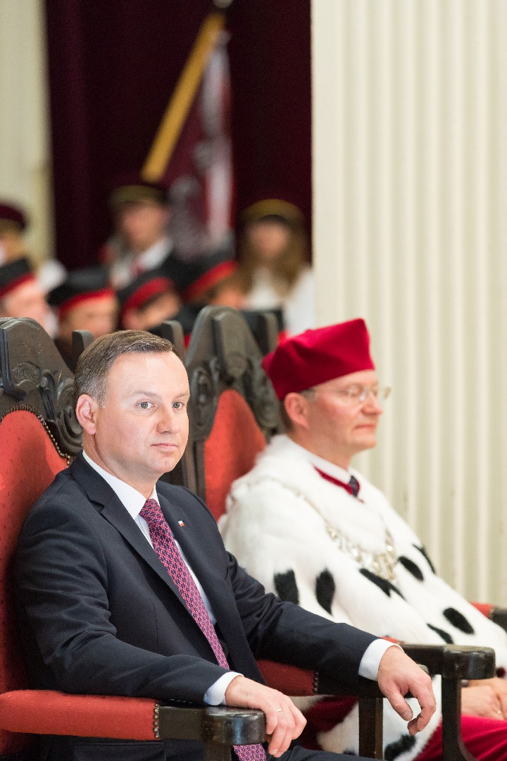 Andrzej Duda zwracał się także do studentów. Powiedział im, że droga, jaką obrali, wymaga odwagi - chronienie zdrowia jest bowiem służbą. Mówił również, jak bardzo ważna dla rozwoju nauki jest debata, polemika, "przełamywanie tego, co zastane".