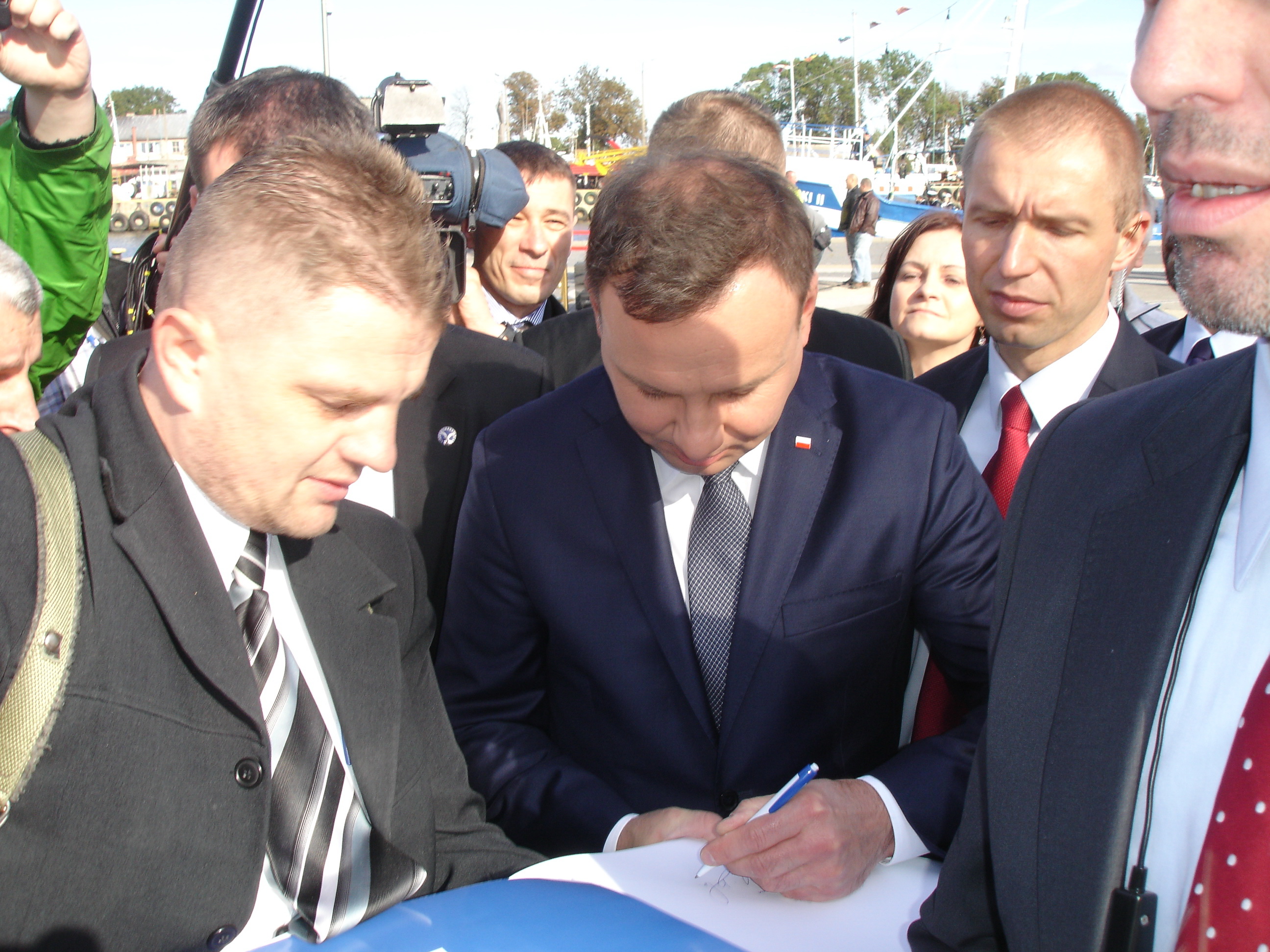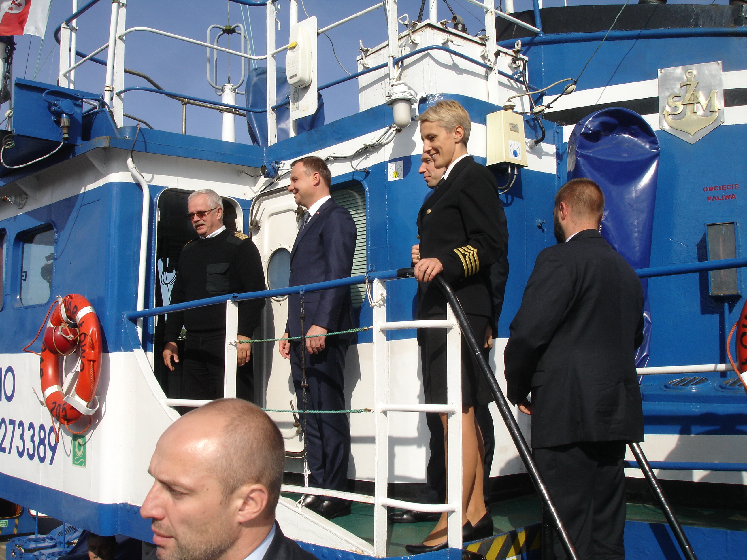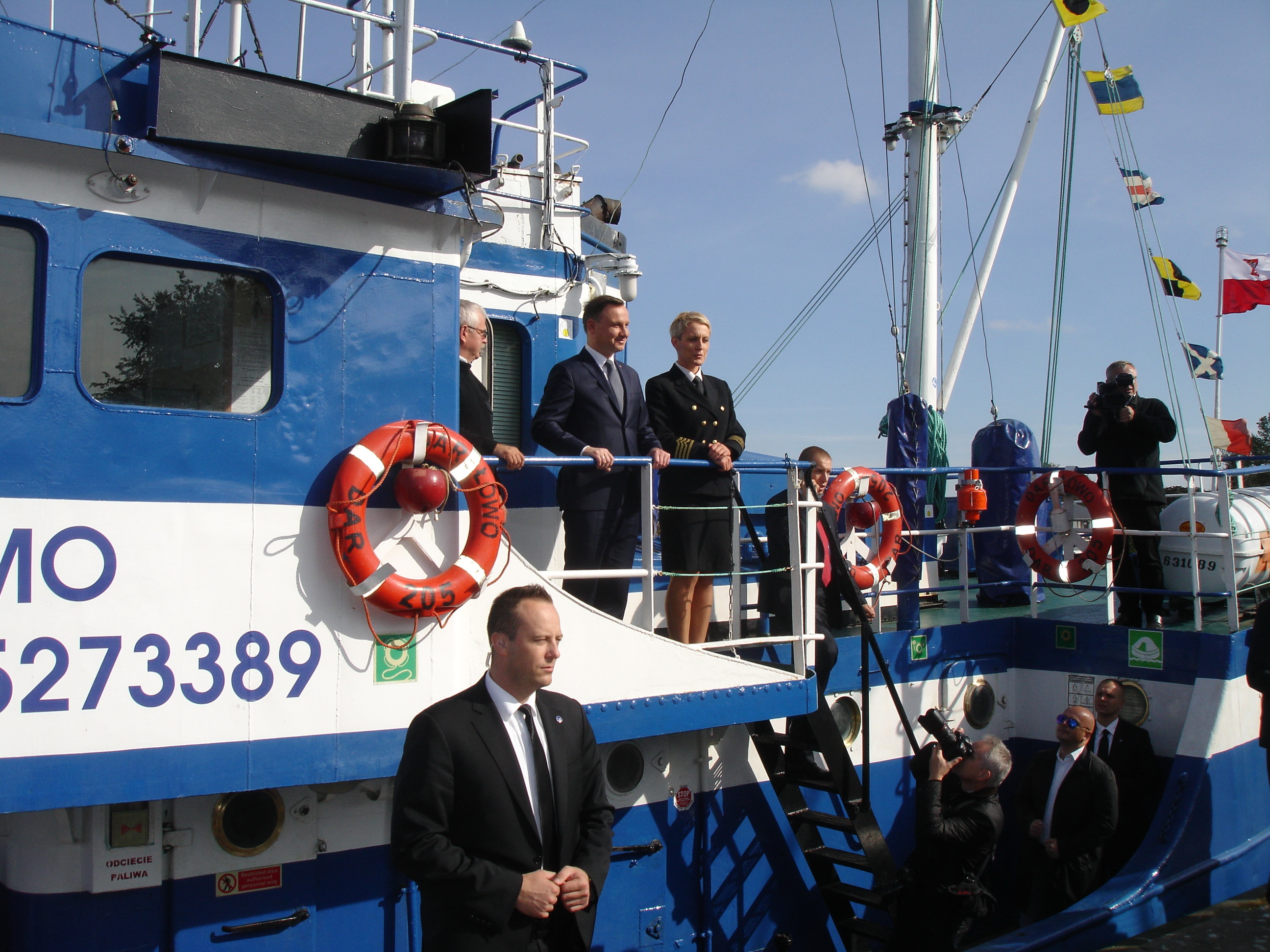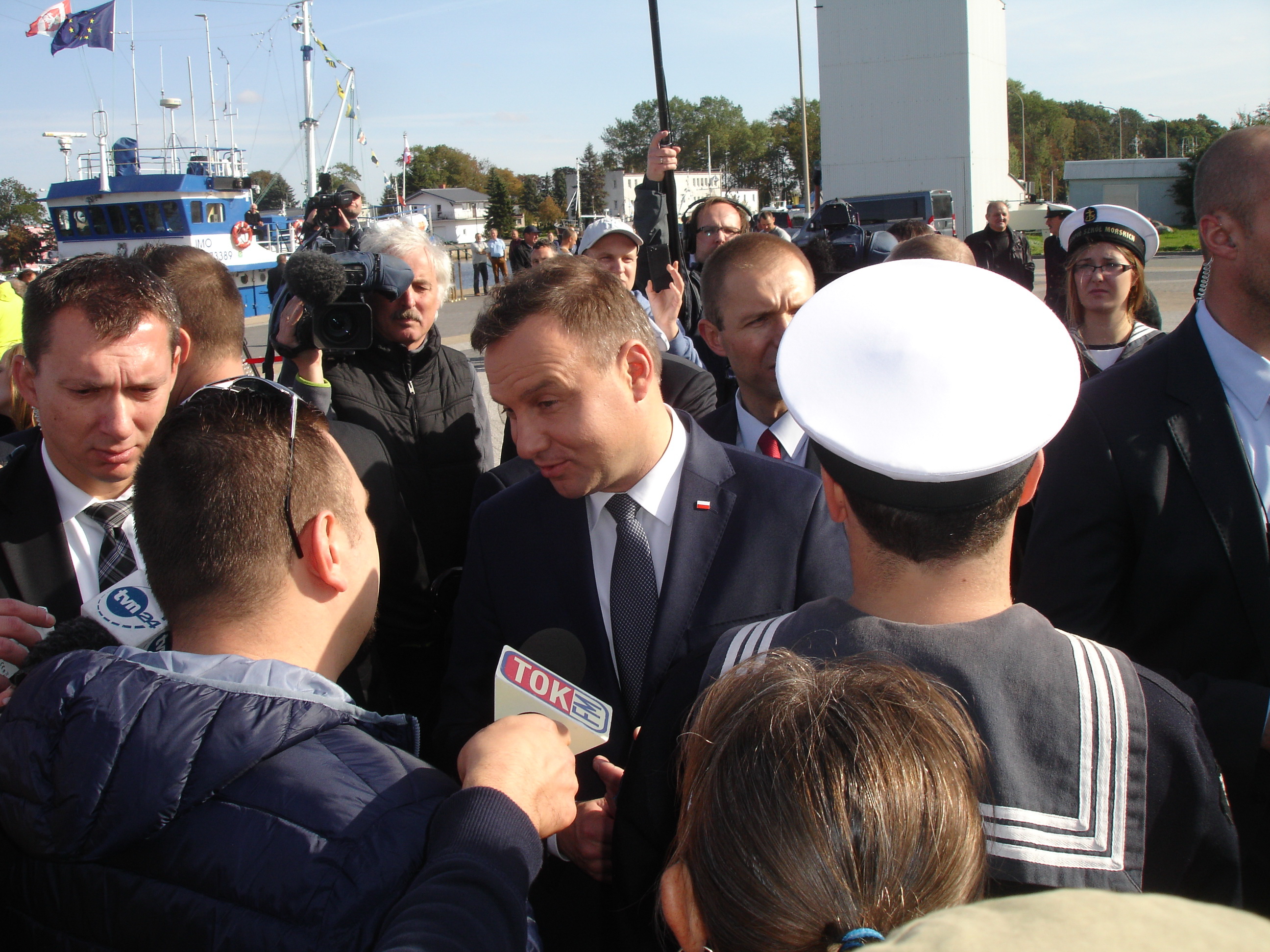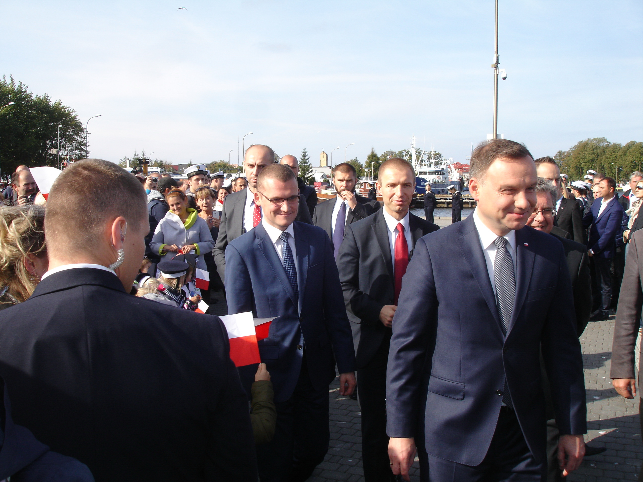 Początkowo wizyta Andrzeja Dudy wyglądała na kurtuazyjną, bo prezydenta RP witały przedszkolaki z biało-czerwonymi flagami w drodze na statek szkoleniowy Zespołu Szkół Morskich "Franek Zubrzycki II" na Nabrzeżu Słupskim. Obecni byli też burmistrz Darłowa Arkadiusz Klimowicz i starosta sławieński Wojciech Wiśniowski.