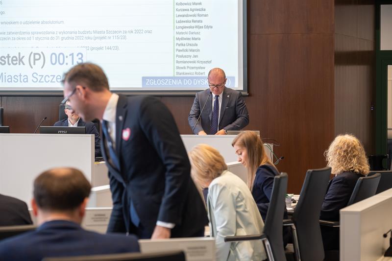 Żonglowanie liczbami i przekrzykiwanie się - tak w dużym skrócie wyglądała dyskusja nad "Raportem o stanie Gminy Miasto Szczecin za 2022 rok" oraz w sprawie udzielenia absolutorium prezydentowi Szczecina. Radnym zajęło to ok. 4 godziny, choć z uwagi na układ sił w Radzie Miasta wynik był z góry przesądzony.