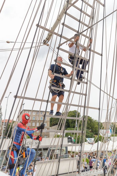Jednym z bardziej widowiskowych wydarzeń soboty na finale The Tall Ships Races była wspinaczka prezydenta Szczecina Piotra Krzystka na maszt żaglowca. Jako cel swojego wyczynu wybrał on omański żaglowiec Shabab Oman II.