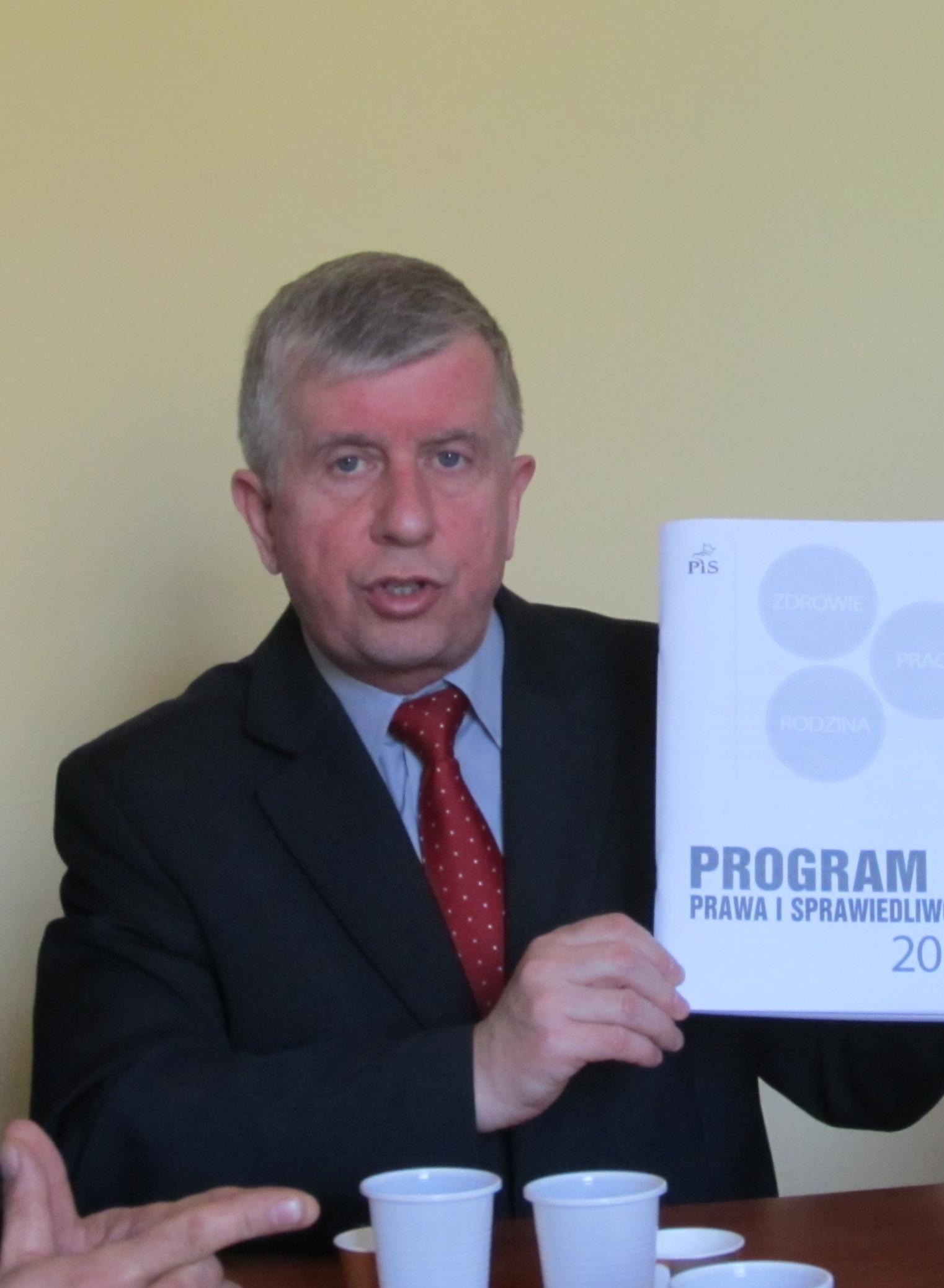 Na zdjęciu: poseł Michał Jach na konferencji prasowej.