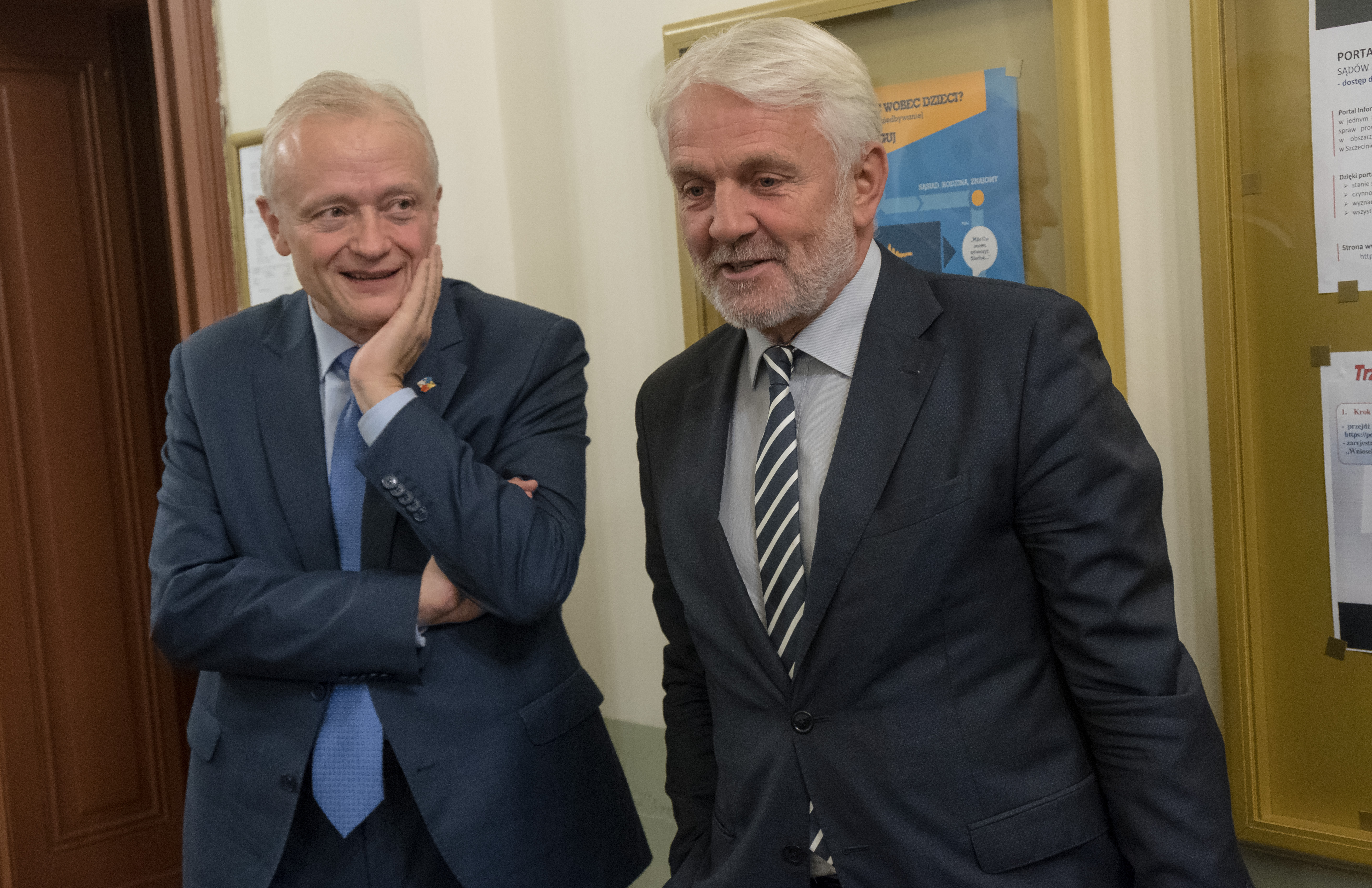 Na zdjęciu: Jacek Piechota i mec. Marek Mikołajczyk na korytarzu sądu.