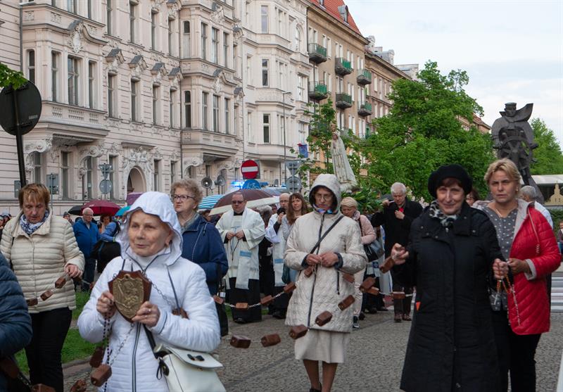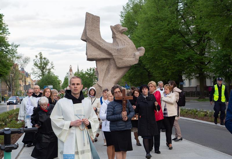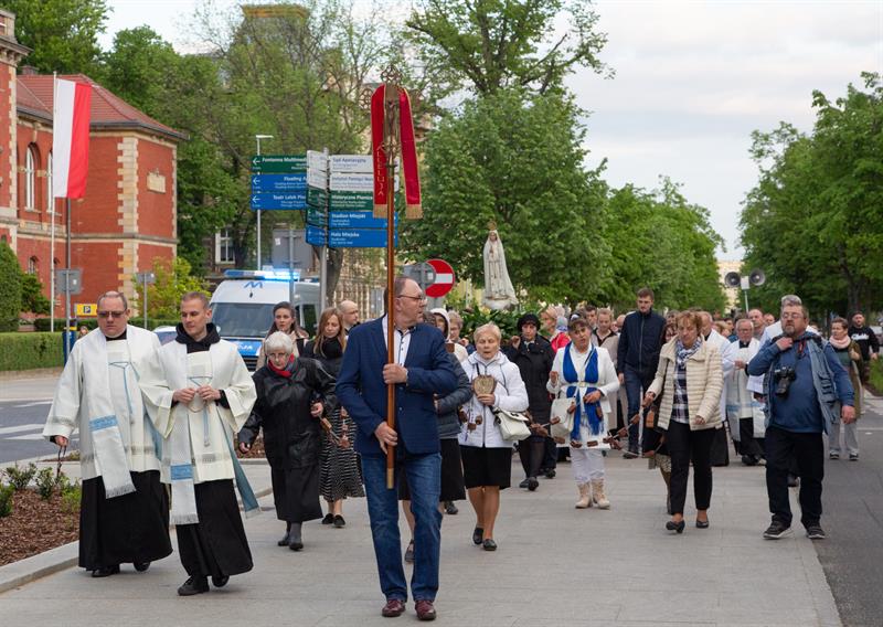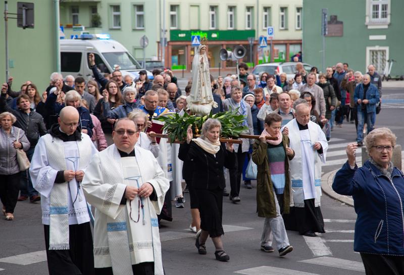 W miniony piątek przypadała 105. rocznica objawień Matki Bożej w Fatimie oraz 41. rocznica zamachu na papieża św. Jana Pawła II i z tej okazji w Szczecinie odbyła się nowenna, Mszę Święta i Procesję Fatimską, która prowadzona przez księdza proboszcza Aleksandra Ziejewskiego, rozpoczęła się w Bazylice Św. Jana Chrzciciela, a następnie liczni wierni przeszli ulicami miasta: Bogurodzicy, Św. Wojciecha, Jagiellońską i Jana Pawła II oraz placami: Lotników, Grunwaldzkim i Armii Krajowej, na Jasne Błonia do figury św. Jana Pawła II, a modlono się w sposób szczególny o pokój na świecie.