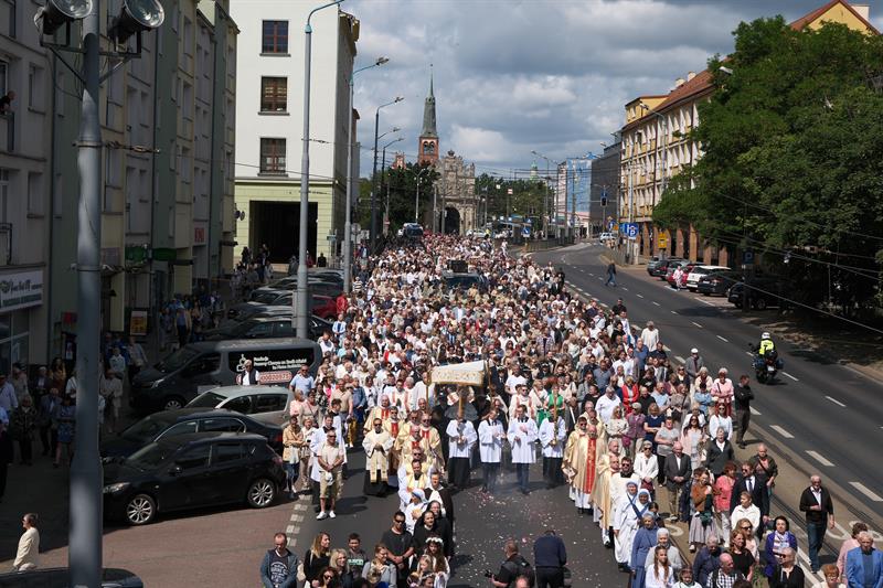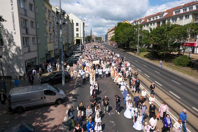 Tysiące wiernych wzięło w czwartek udział w głównej procesji Bożego Ciała w Szczecinie. Tegorocznym uroczystościom przewodniczył arcybiskup Wiesław Śmigiel, metropolita szczecińsko-kamieński. Procesja rozpoczęła się o godzinie 10:00 przed kościołem Jana Chrzciciela na ulicy Bogurodzicy.