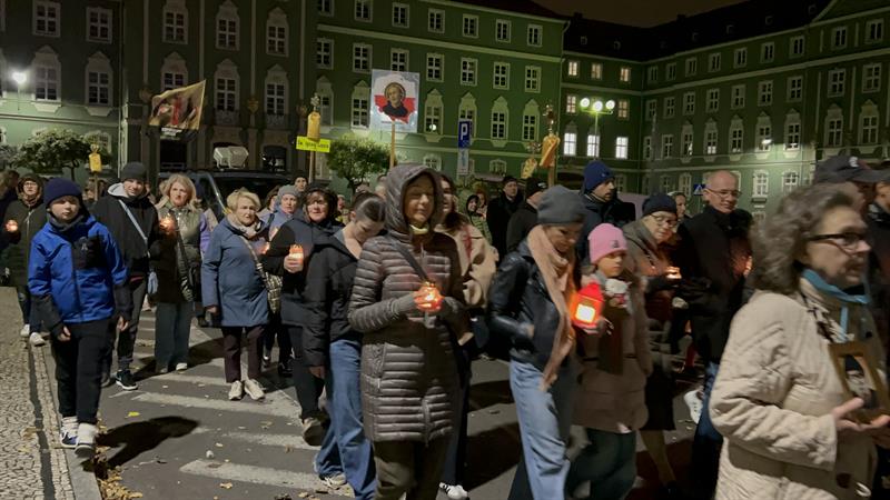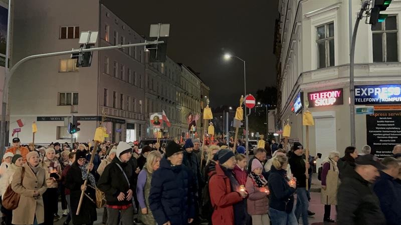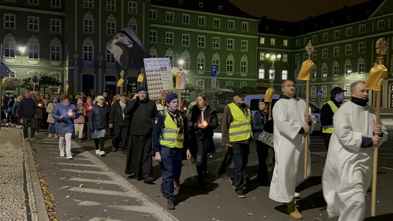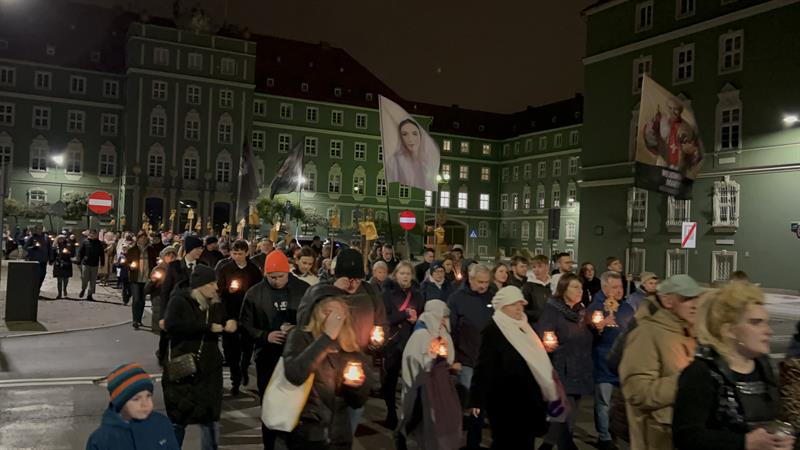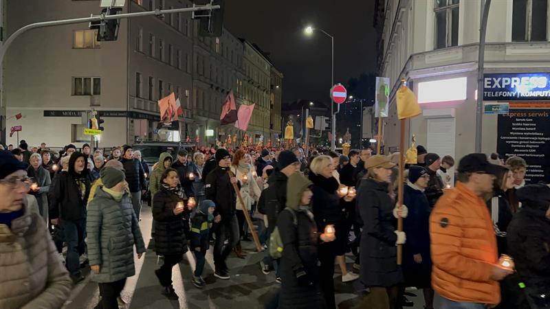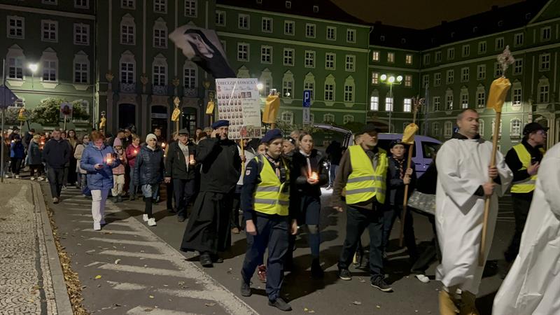 – Tą wieczorną procesją rozpoczynamy uroczystość Wszystkich Świętych, która jak każda uroczystość w Kościele ma charakter bardzo radosny, wspominamy bowiem wszystkich tych, którzy byli przed nami i wypełniając w swoim życiu Bożą wolę, osiągnęli wieczne szczęście przebywania z Bogiem w niebie – powiedział ksiądz Tomasz Kancelarczyk na Jasnych Błoniach.