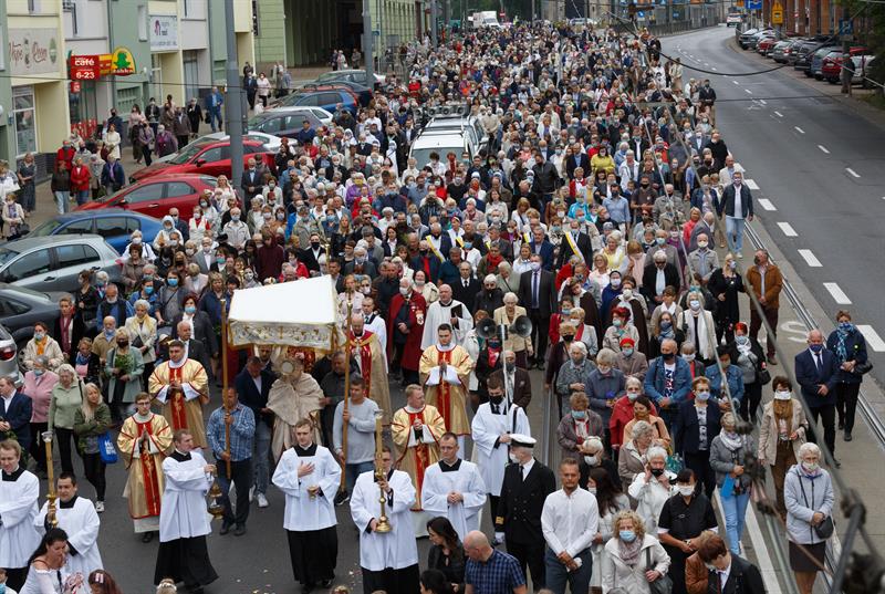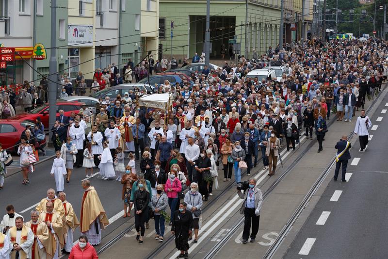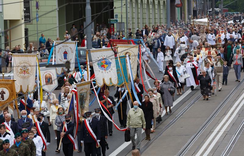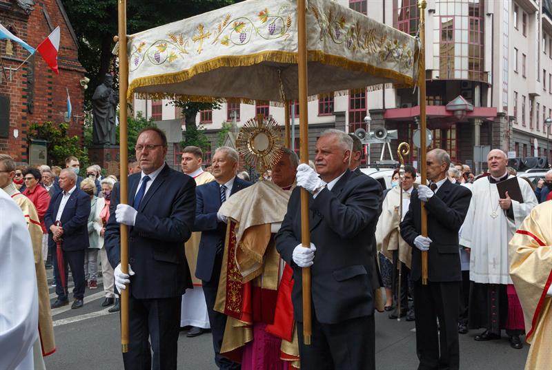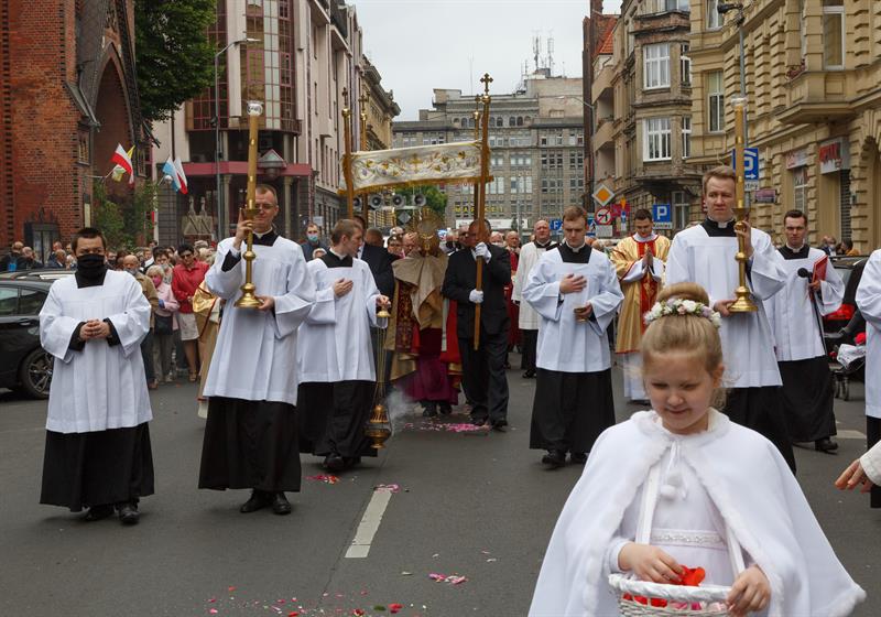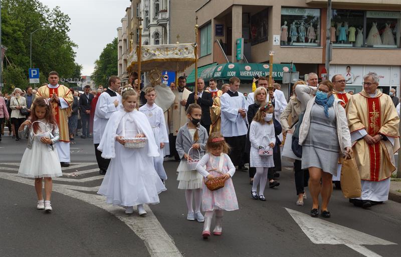 Ulicami Szczecina w czwartek (11 czerwca) przechodzą procesje. W ten sposób katolicy przeżywają uroczystość Najświętszego Ciała i Krwi Chrystusa – Boże Ciało. Tym razem obowiązują dodatkowe zasady bezpieczeństwa, związane ze stanem epidemii - czyli dystans lub zasłanianie ust i nosa (maseczki).