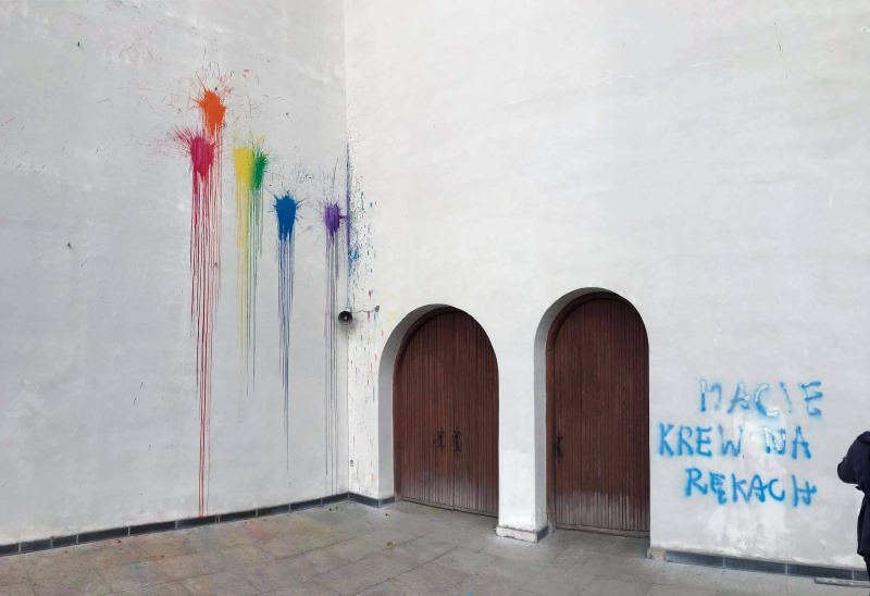 Do kolejnej profanacji świątyni doszło w piątek w Szczecinie. Na ścianach kościoła pw. Świętego Krzyża przy ulicy Wieniawskiego nieznani sprawcy wymalowali napis „Macie krew na rękach” oraz plamy w barwach tęczy. Oprócz tego na tablicy z ogłoszeniami parafialnymi wykonali napis „soli LGBT” co w języku łacińskim oznacza „tylko LGBT”.