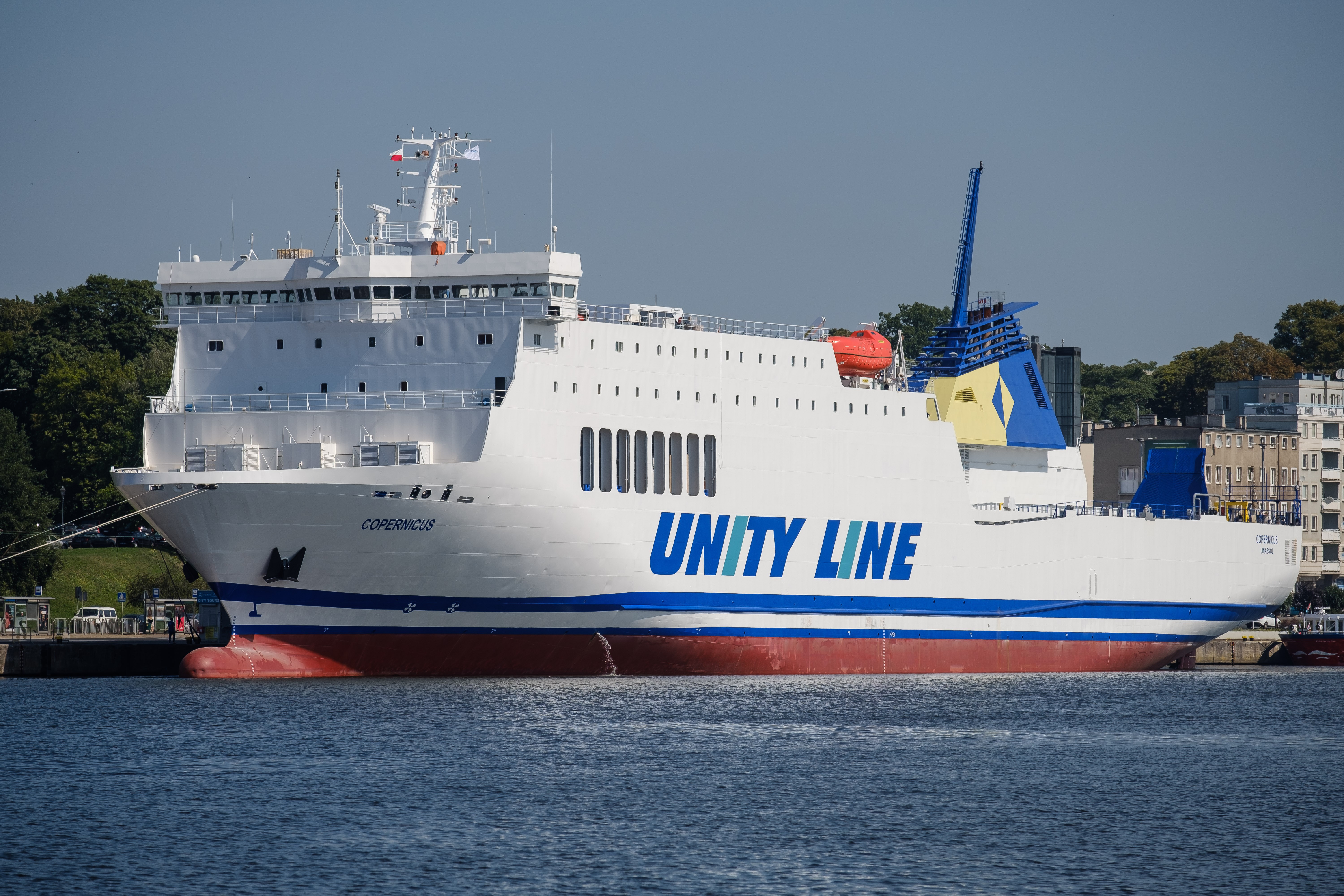Należący do armatora Euroafrica Shipping Lines prom „Copernicus” zacumował w środę (25 lipca) – na jeden dzień – przy nabrzeżu u stóp Wałów Chrobrego w Szczecinie. Mająca 150 m długości jednostka przeszła modernizację i będzie pływać w barwach Unity Line (operatora promowego z grupy Polskiej Żeglugi Morskiej), tak jak pozostałe promy Euroafriki.