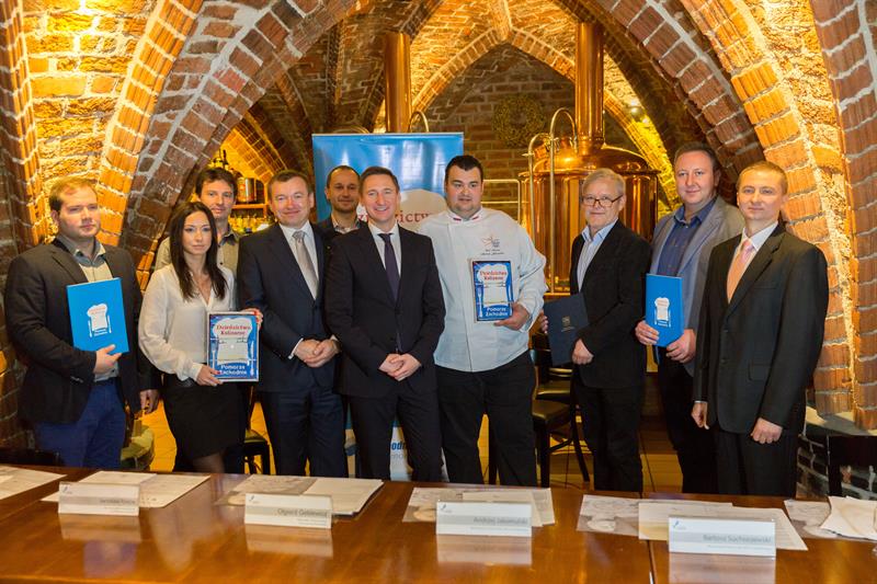 – Niewątpliwie dobra kuchnia wzbogaca ofertę turystyczną regionu – podkreślał marszałek województwa Olgierd Geblewicz gratulując wspólnie z wicemarszałkiem Jarosławem Rzepą najmłodszym restauratorom w Sieci Dziedzictwa Kulinarnego Pomorza Zachodniego. Nieprzypadkowo dziennikarzy zaproszono właśnie do lokalu Wyszak Browar Rodzinny. To piąte miejsce w Szczecinie, które może się pochwalić charakterystycznym logo z czapką kucharską. Certyfikat i tabliczka potwierdzają jakość oferowanych produktów.
