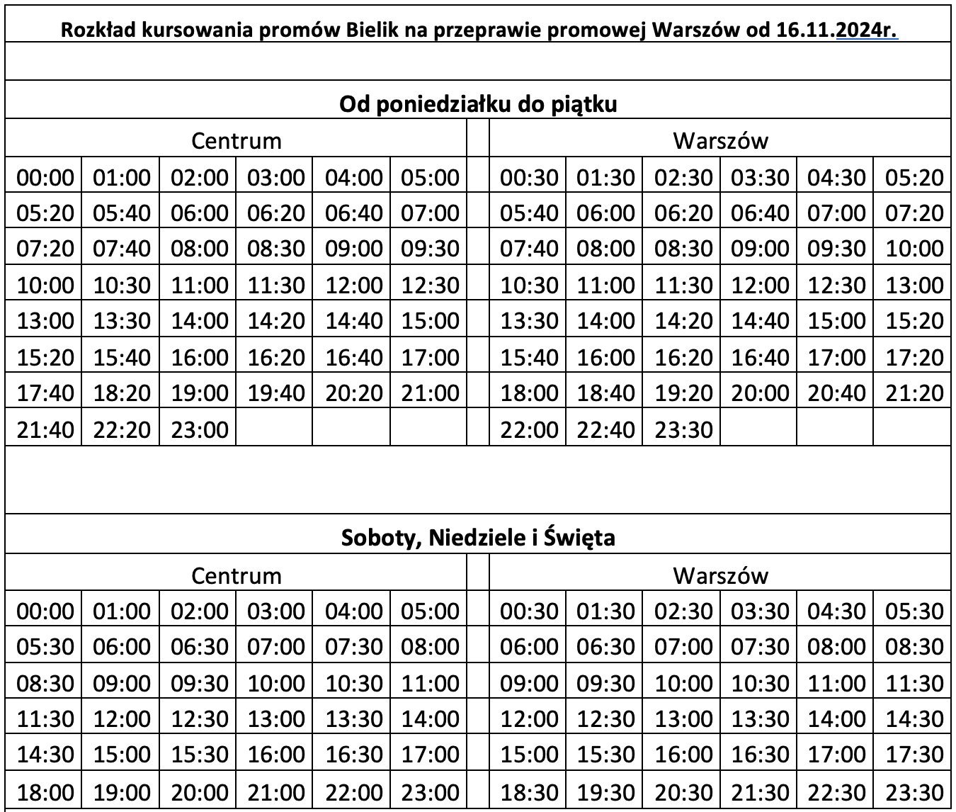 Promy w Świnoujściu od soboty (16 listopada) kursują według nowego rozkładu. Decyzja ta została podjęta w związku z awarią promu Bielik.