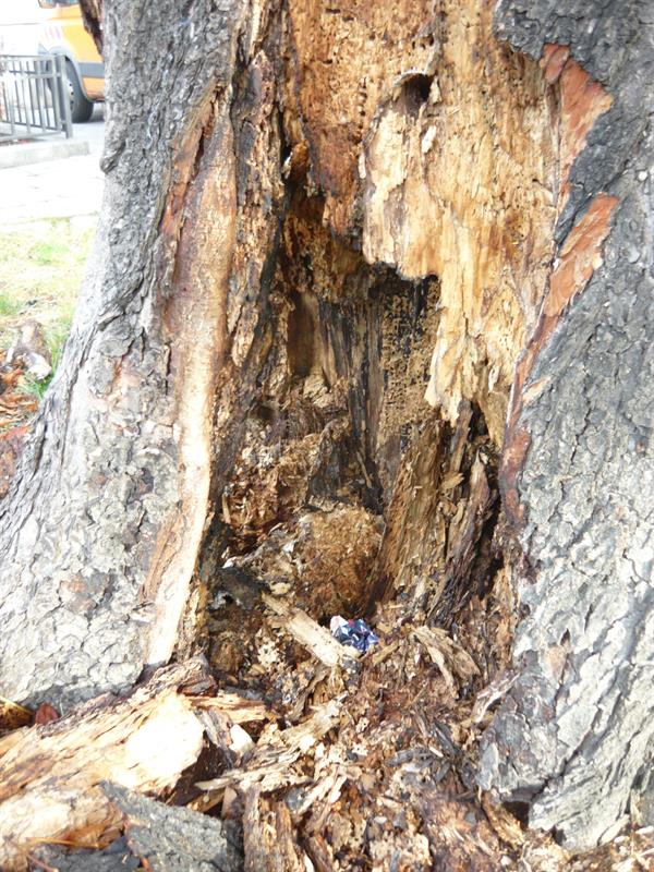 Z wypowiedzi protestującego wynik, że ktoś od dawna chciał załatwić to drzewo i dopiął swego. Dość dziwnie spróchniało, pewnie od tej farby i podpalenia, co spowodowało obumarcie części pnia. Widać komuś w tym miejscu nie pasowało.