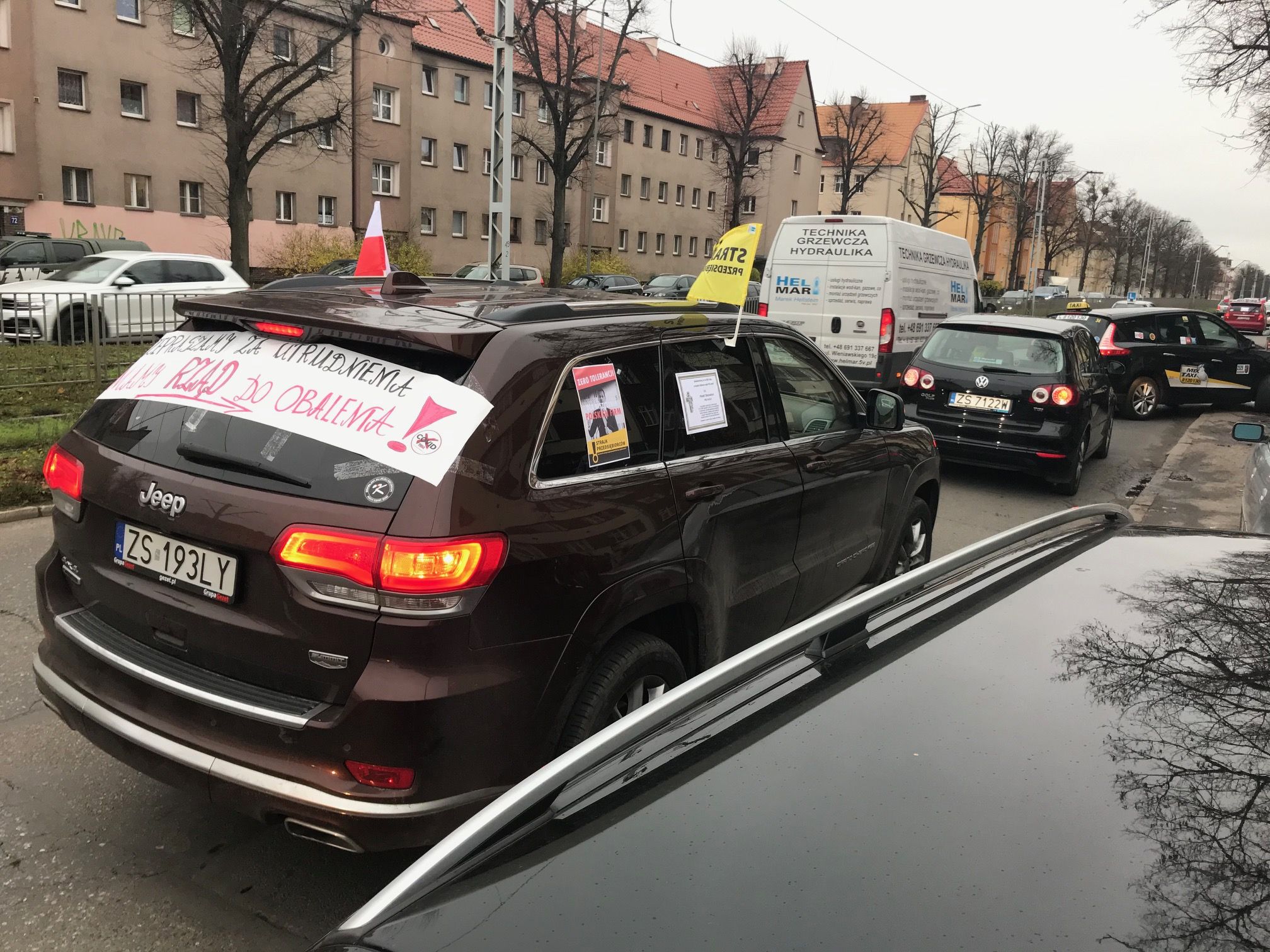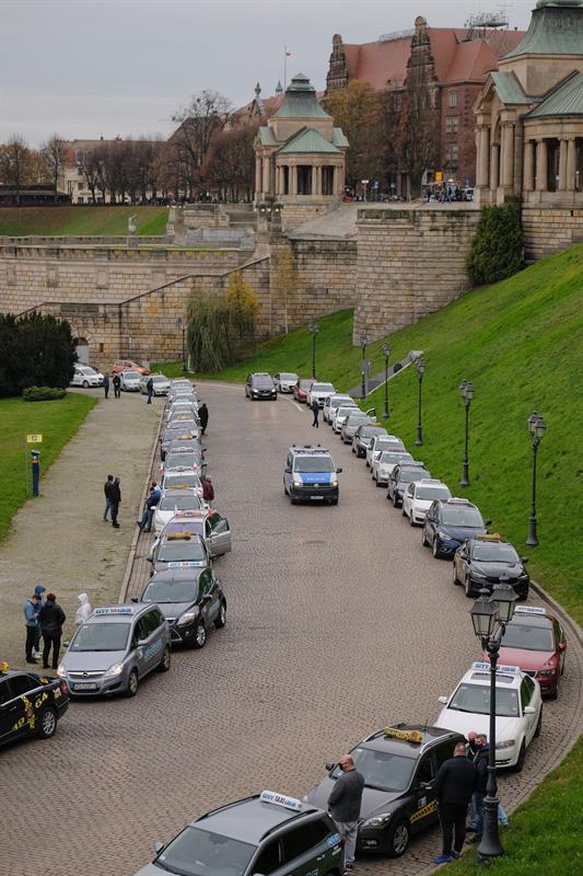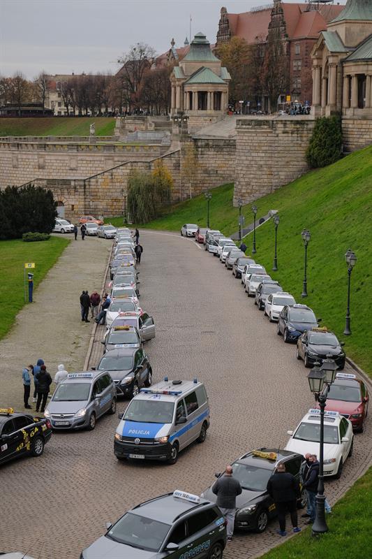 Wczorajszy protest rozpoczął się zgodnie z planem o godz. 13. Licząca grubo ponad setkę aut kawalkada taksówek różnych korporacji wyruszyła z ul. Admiralskiej i chwilę później dotarła pod Urząd Wojewódzki, gdzie organizatorzy złożyli pismo z postulatami. Potem kondukt, bo protest zorganizowany był w konwencji pogrzebowej, miał dotrzeć pod siedzibę Prawa i Sprawiedliwości przy ul. Adama Mickiewicza. Tam uczestnicy mieli złożyć żałobny wieniec. Ale jakoś nie wyszło.