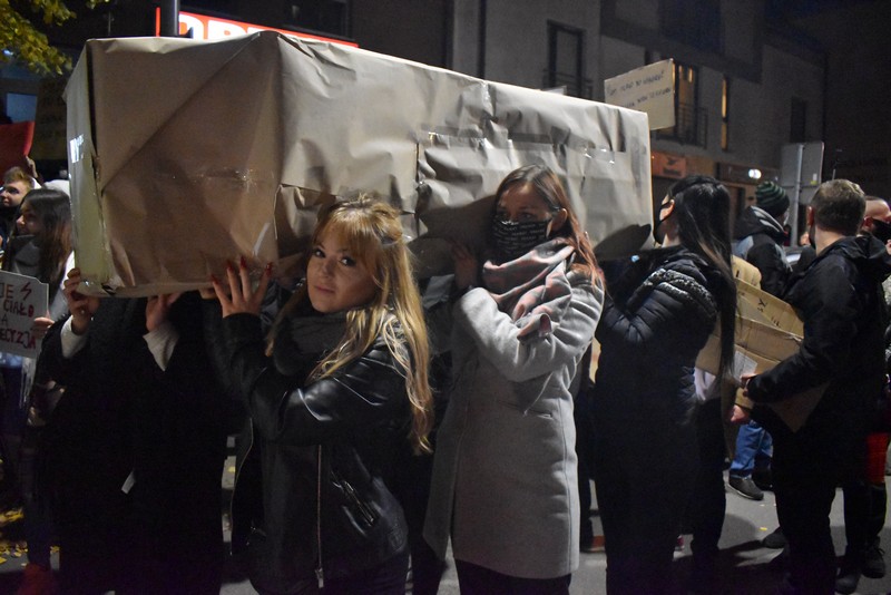 Setki stargardzian przemaszerowały dziś ulicami miasta, protestując przeciwko decyzji Trybunału Konstytucyjnego w sprawie aborcji. Pochód z atrapą trumny na czele i spychaczem, przy dźwięku klaksonów i wuwuzeli, przeszedł przez śródmieście, centrum i stargardzką starówkę.