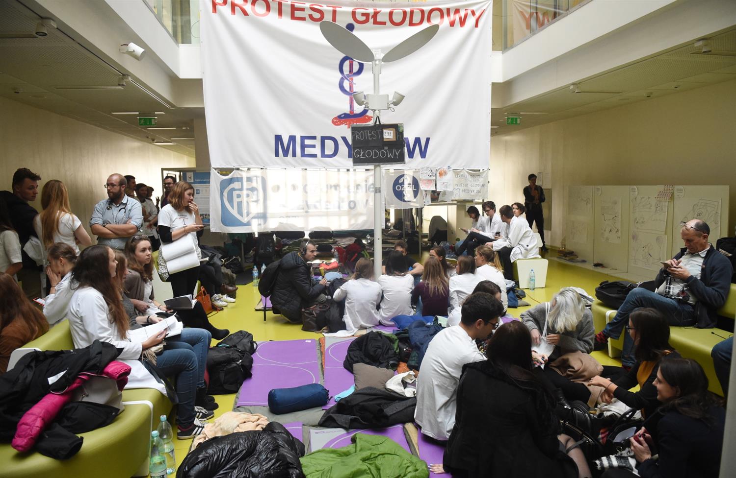 Oj tam, oj tam z tym przymieraniem. Właśnie wróciłem ze sklepu i widziałem, jakie zakupy robiło dwóch rezydentów (wracali z protestu, w białych fartuchach, koszulkach z logo protestu i z transparentami). Trzy reklamówy pełne jedzenia i picia, na bogato. Gdy wyszli, zaczepiła ich starsza pani i powiedziała, co o tym wszystkim myśli.