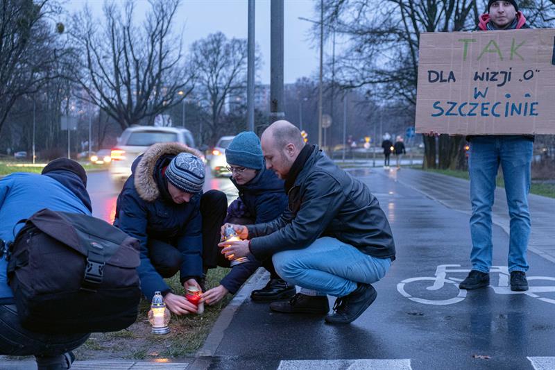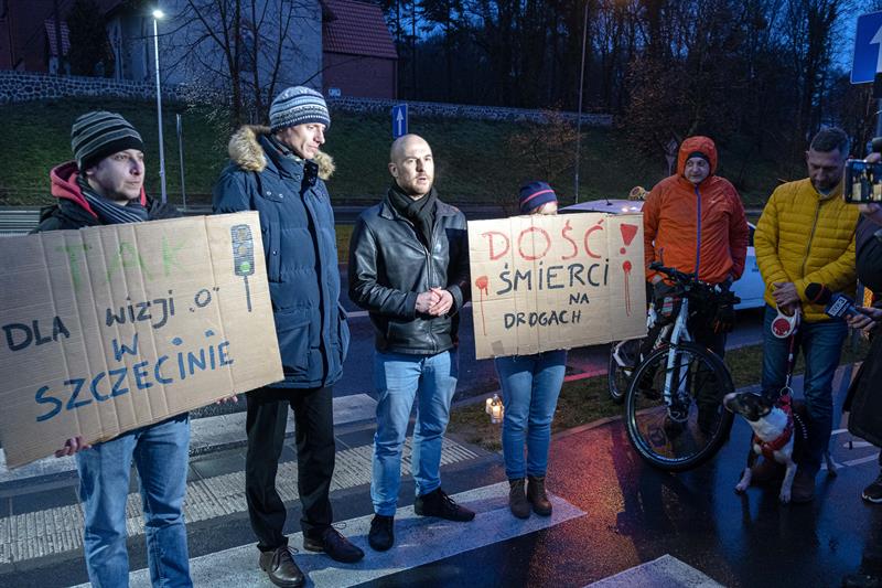 Protestujący przyszli z transparentami, w miejscu tragedii zapalili też znicze. - Żądamy bezpiecznych ulic i należytej dbałości o nasze życie i zdrowie - mówili. Przypomnieli, że nowe rondo jest niebezpiecznie dla pieszych, co mieszkańcy zgłaszali już na etapie projektu. Ich zdaniem szczecińscy urzędnicy przy przebudowie nie wzięli pod uwagę zagrożenia dla przechodniów. Liczyła się dla nich jedynie przepustowość, prędkość i wygoda kierowców.