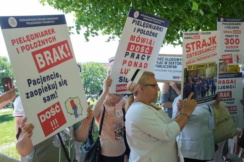 „Dość pracy po 300 godzin miesięcznie”, „Pandemia rządowego chaosu”, „Pielęgniarki i położne mają dość”. Z takimi hasłami na transparentach protestowały w poniedziałek (7 czerwca) pod Urzędem Wojewódzkim pielęgniarki i położne z Ogólnopolskiego Związku Zawodowego Pielęgniarek i Położnych. Reprezentantki placówek medycznych przyjechały do Szczecina z całego województwa. Domagały się uwzględnienia ich poprawek w przygotowywanej przez rząd ustawie, którą nazywają ustawą Niedzielskiego, a dotyczącą sposobu wynagradzania poszczególnych grup pielęgniarek.