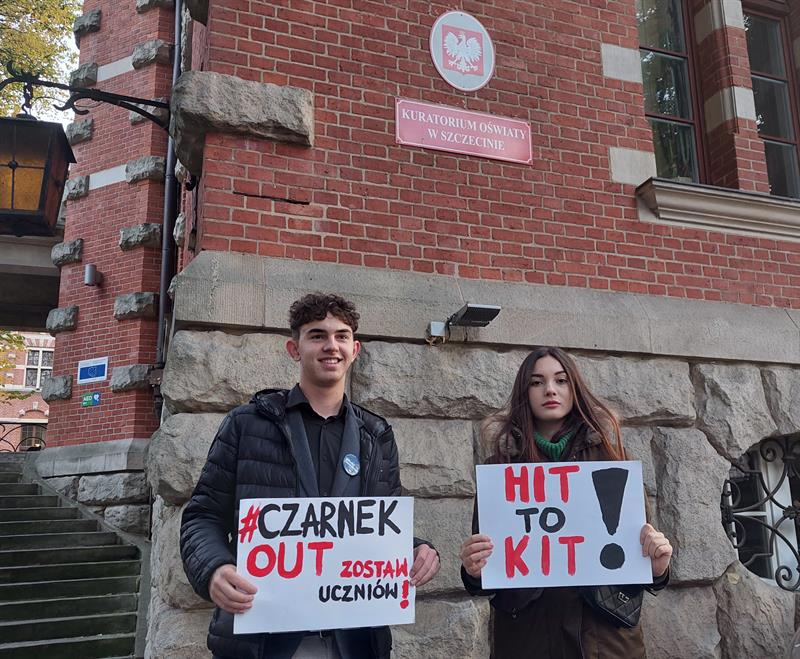 - Chciałbym chodzić do takiej szkoły, w której nie zastrasza się dyrektorów czy nauczycieli wyrzucaniem z pracy, gdzie minister służy uczniom a nie prezesowi partii - podkreślał Jakub Salomon, uczeń klasy trzeciej III Liceum Ogólnokształcącego w Szczecinie. Wtórowała mu Zuzanna Jeleniewska, tegoroczna maturzystka z XI LO, która podobnie ocenia poziom edukacji pd kierownictwem Przemysława Czarnka, a szczególnie boi się egzaminu dojrzałości, bo - jej zdaniem - nowa matura to dziś jedna wielka niewiadoma. - Nieprzygotowani są nauczyciele, nieprzygotowani są uczniowie.