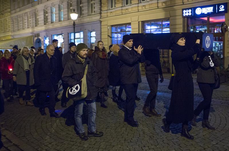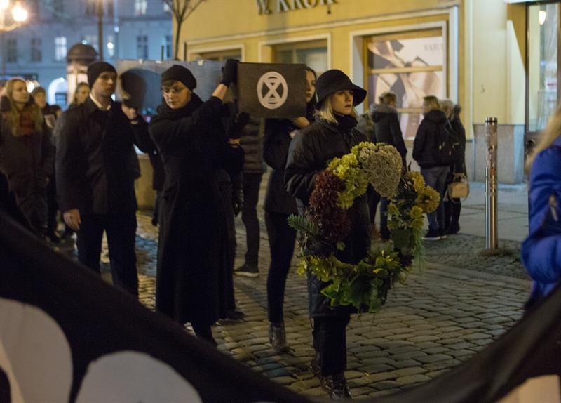 - Zdecydowaliśmy się na formę pogrzebu, ponieważ świat jaki znamy, ginie na naszych oczach – mówił Wojciech Czypicki z Extinction Rebelion. – Dlatego, że trwa masowe wymieranie gatunków roślin i zwierząt. Temperatura globalna rośnie z roku na rok, a nasze samorządy i rządy nie traktują tego problemu poważnie. W Polsce dotykają nas susze, powodzie, anomalia pogodowe. Niedługo grozić nam będą głód, wojny, konflikty zbrojne, masowe migracje uchodźców klimatycznych, którzy ruszą z Afryki i Azji.