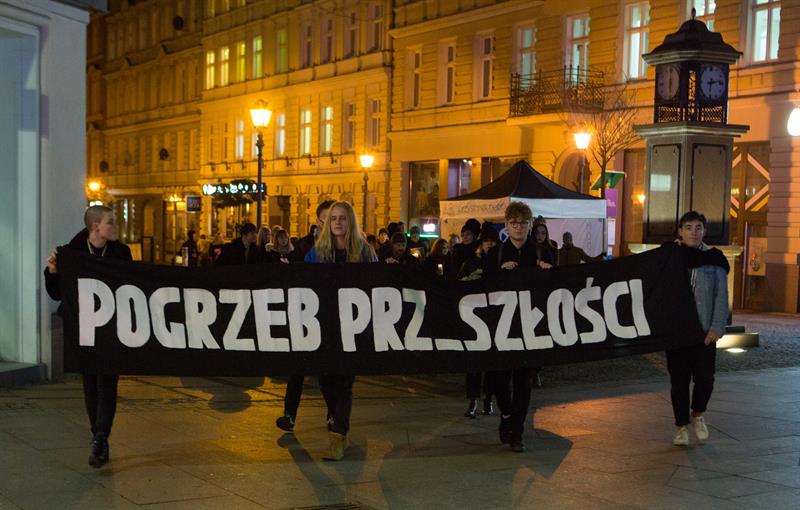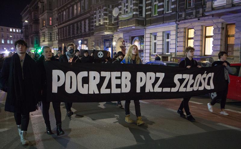 Symboliczny kondukt żałobny w ramach protestu „Pogrzeb Prz_szłości” przeszedł we wtorek (19 listopada) ulicami Szczecina. Zakończył się równie symbolicznym pogrzebem pod Urzędem Miasta. Protestujący chcą ogłoszenia w Szczecinie Klimatycznego Stanu Wyjątkowego.