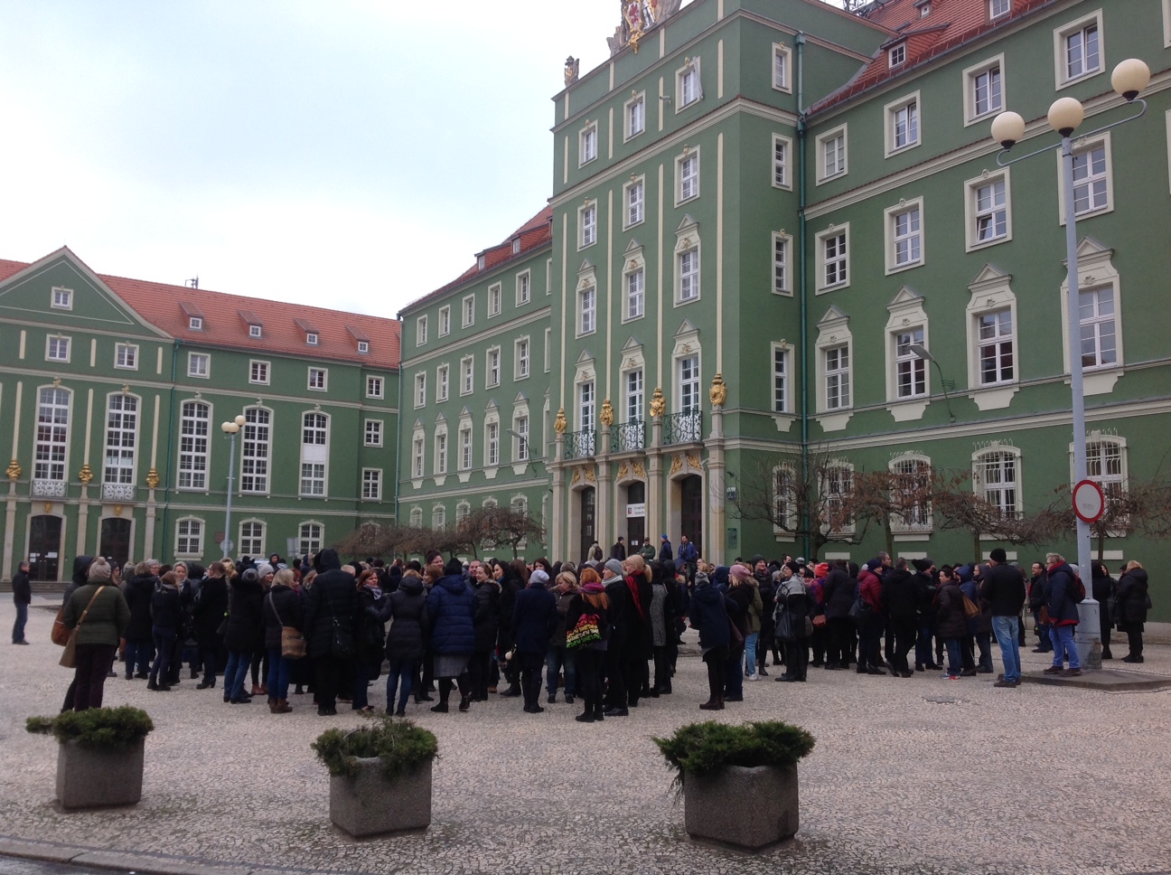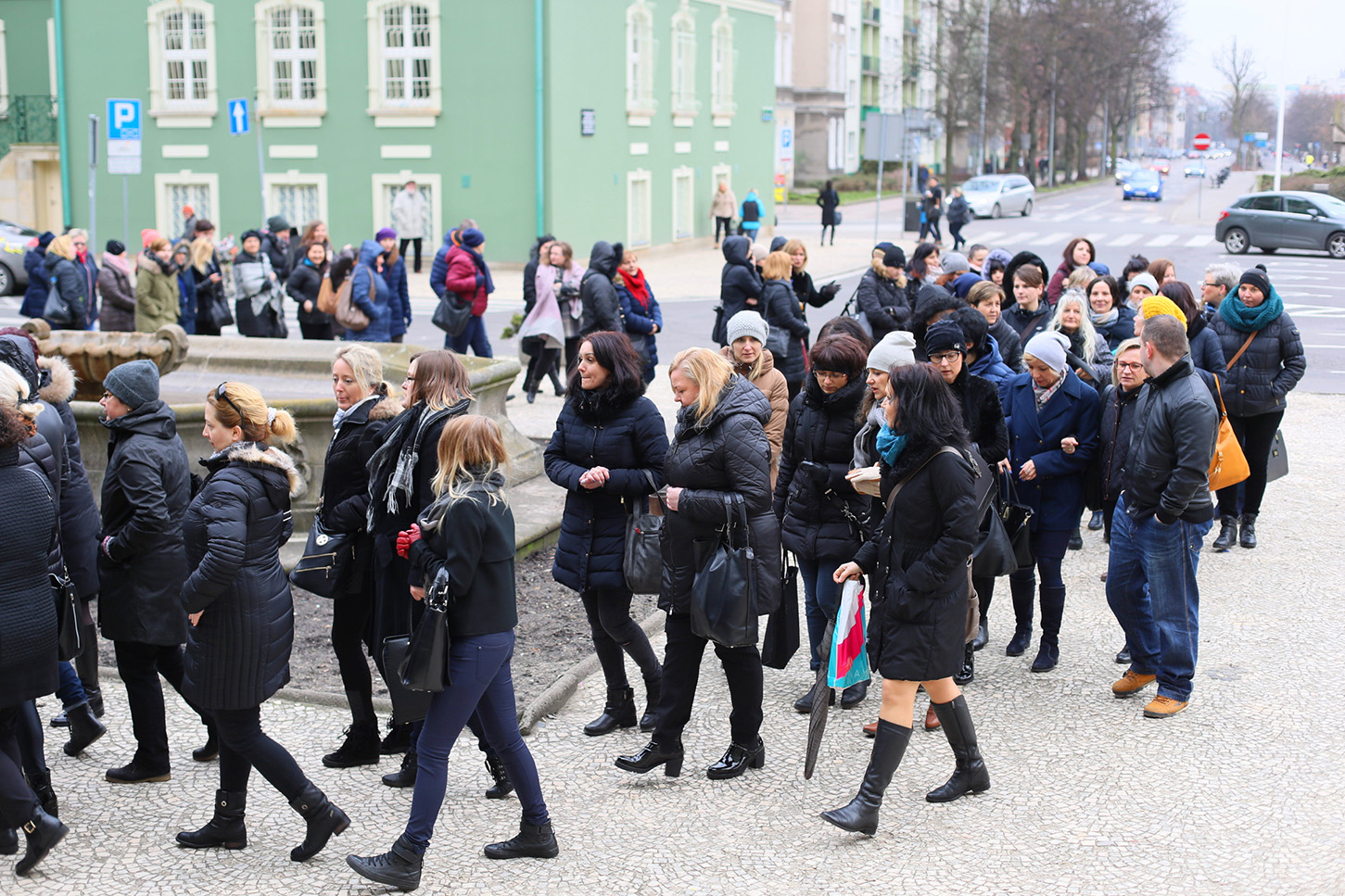 Przed magistrat przyszli ubrani na czarno pracownicy socjalni, ale także ci z działu organizacyjnego, finansowego, kadr. Podpisywali się pod petycją, którą pół godziny później złożyli do wiceprezydenta Krzysztofa Soski. Wnioskują o przyznanie podwyżek w kwocie 700 zł brutto do wynagrodzenia zasadniczego (bez uwzględniania wysługi lat i dodatków). Ich inicjatywa nie ma związku z trwającymi negocjacjami w sprawie podwyżek płac prowadzonymi przez związki zawodowe MOPR.