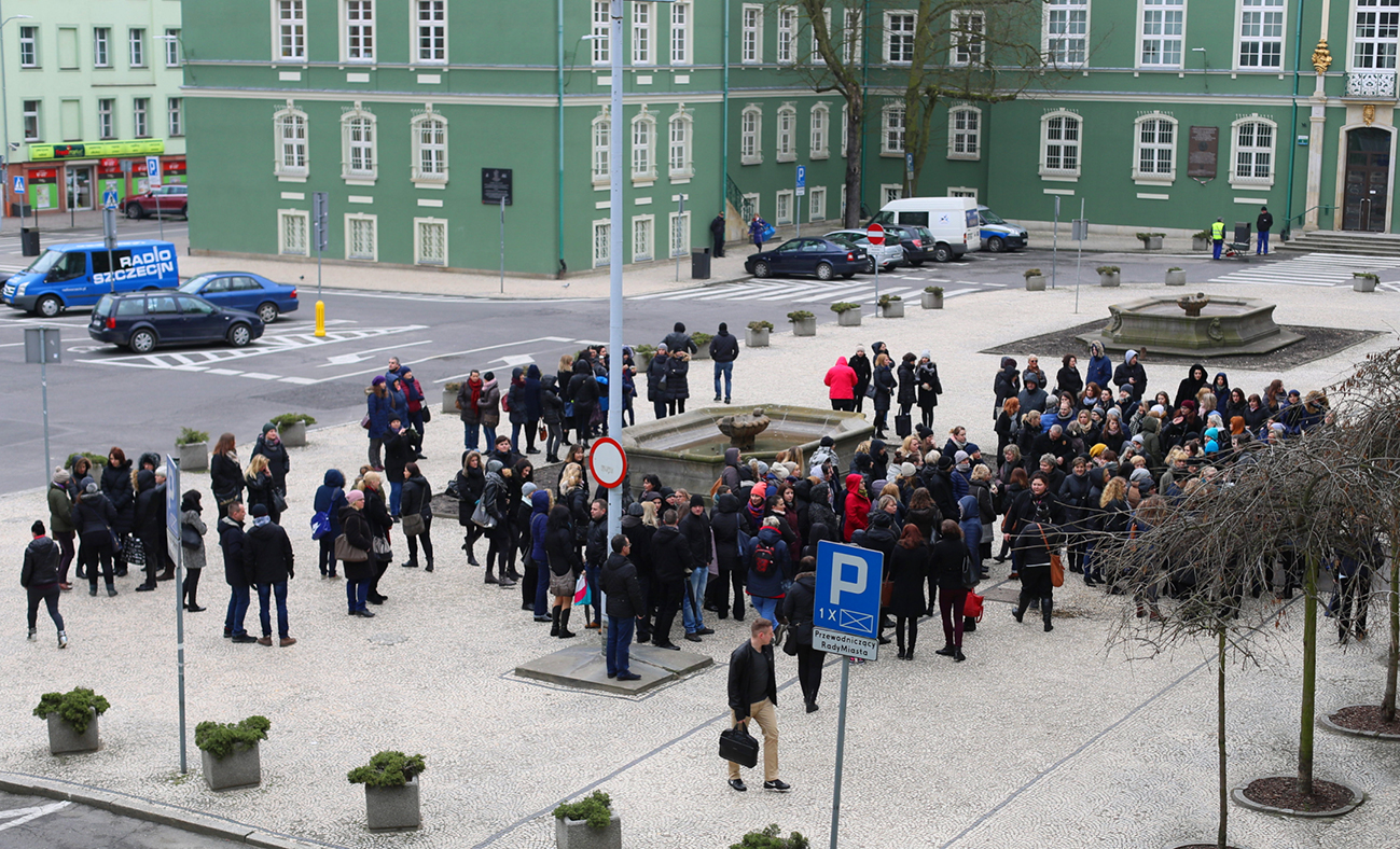 Dwustu czterdziestu pracowników Miejskiego Ośrodka Pomocy Rodzinie w Szczecinie (ponad połowa zatrudnionych) wzięło w piątek urlopy na żądanie, by o godz. 8 rano zebrać się pod Urzędem Miasta i wyrazić swój protest dotyczący niskich płac oraz złożyć petycję do prezydenta w sprawie podwyżek. - Mamy dość głodowych pensji - mówili. - Walczymy od lat, ale miasto nas nie słucha. Chcemy pokazać, że potrafimy się zjednoczyć i walczyć o swoje. Już nie odpuścimy!