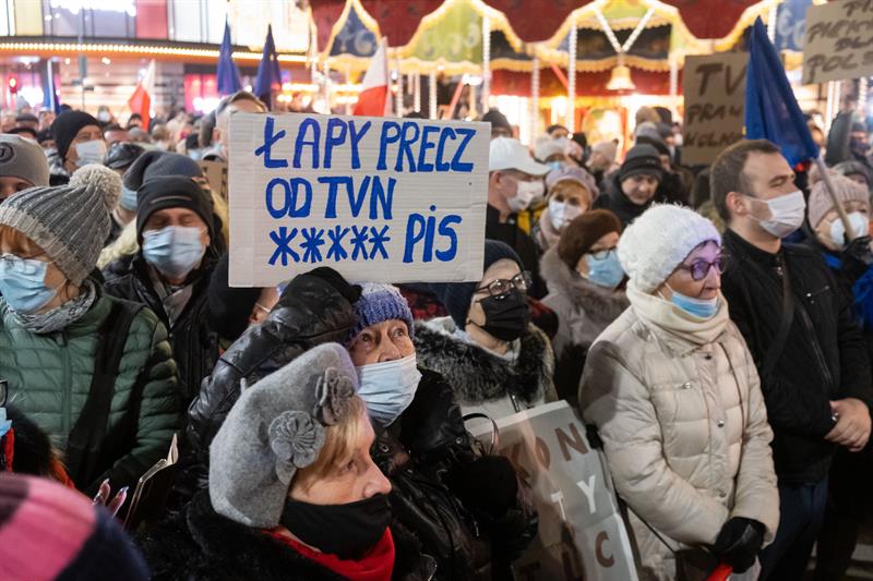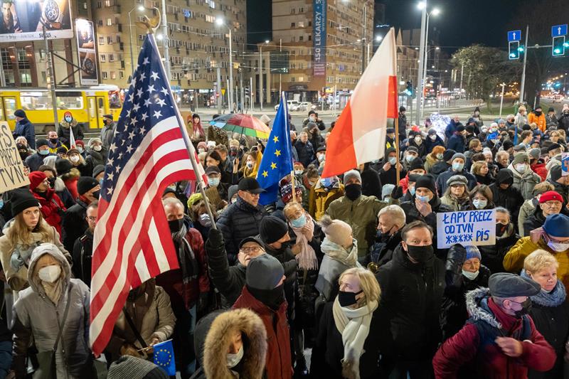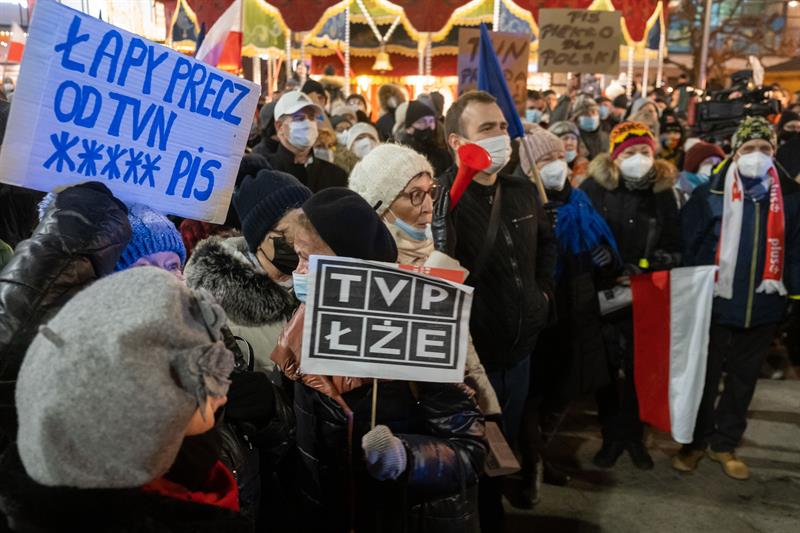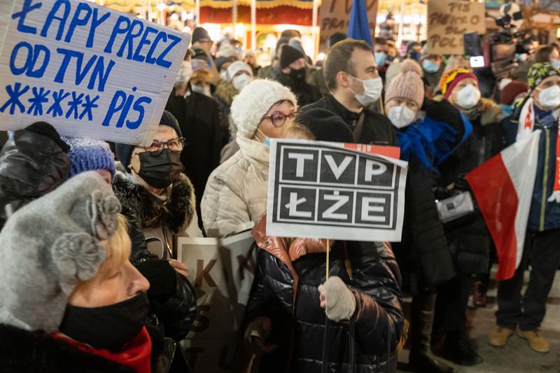 Skompromitowani POlitycy znow robią wodę z mózgów ciemnej masie. W innych krajach prawo o stosunkach własnościowych mediów funkcjonuje na podobnych zasadach tylko w Polsce musi być inaczej i można doic ten kraj do bólu i do łez. Biuro na lotnisku,żadnego zatrudnionego pracownika to są standardy demokracji i praworządności i to POpieraja te oszołomy na placu przkretacza adamowicza.Zamiast namawiać ludzi do szczepien i stosowania ddm ten pseudo lekarz w dobie pandemi uprawia swoją brudna POlityke.