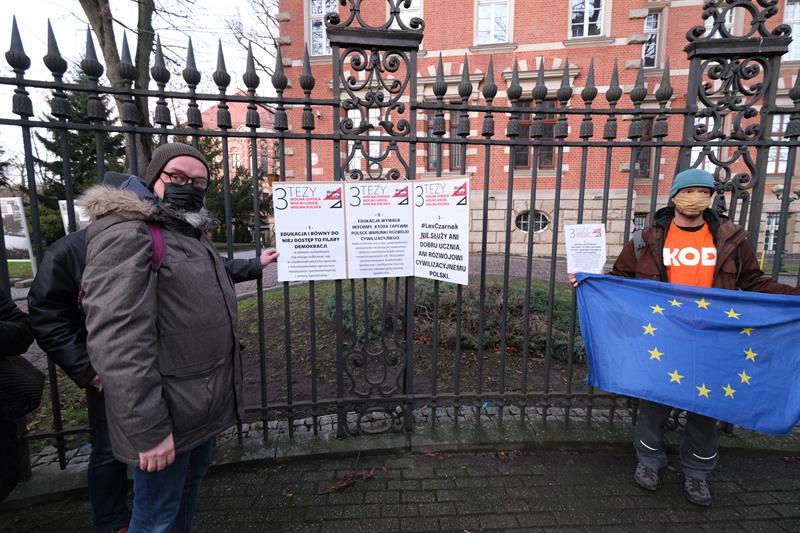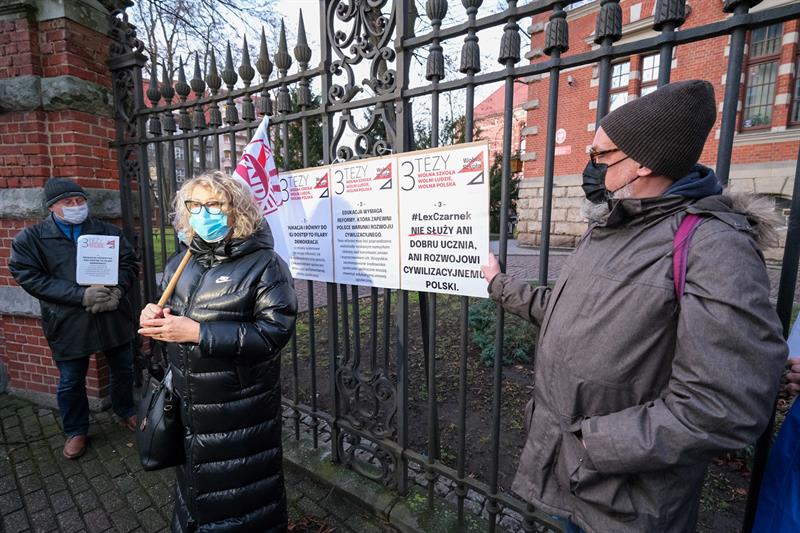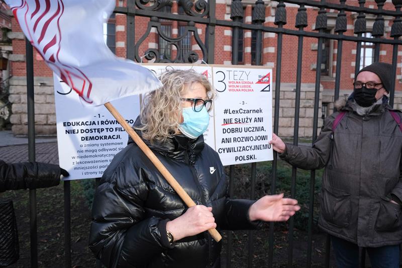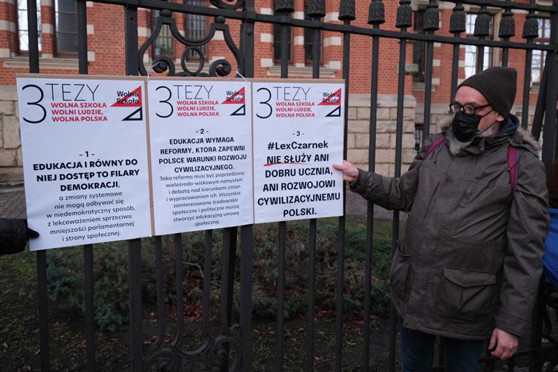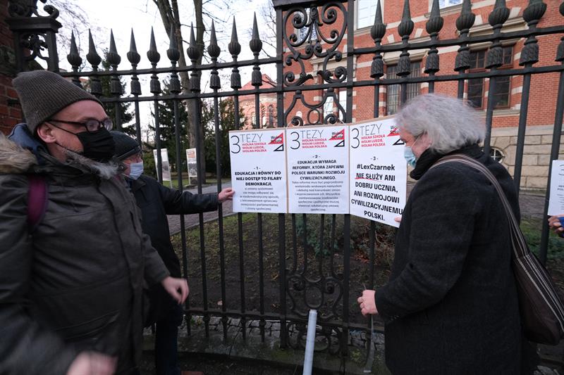 W poniedziałek, 3 stycznia o godz. 16 przed Kuratorium Oświaty w Szczecinie odbył się protest przeciwko zmianie prawa oświatowego, tzw. lex Czarnek. Podobnie, jak w szesnastu innych polskich miastach, protestujący – w stolicy naszego województwa głownie skupieni w Związku Nauczycielstwa Polskiego - wywiesili na bramach kuratoriów trzy tezy mówiące o wolności szkoły, obywateli i kraju.