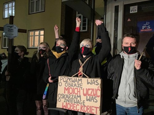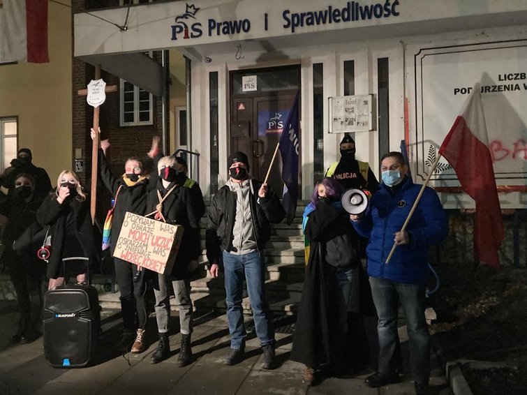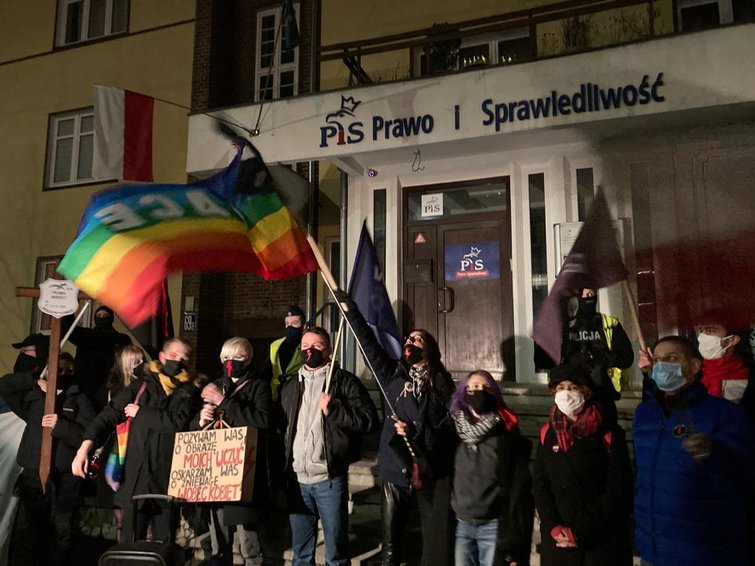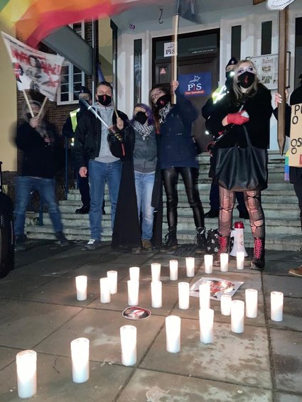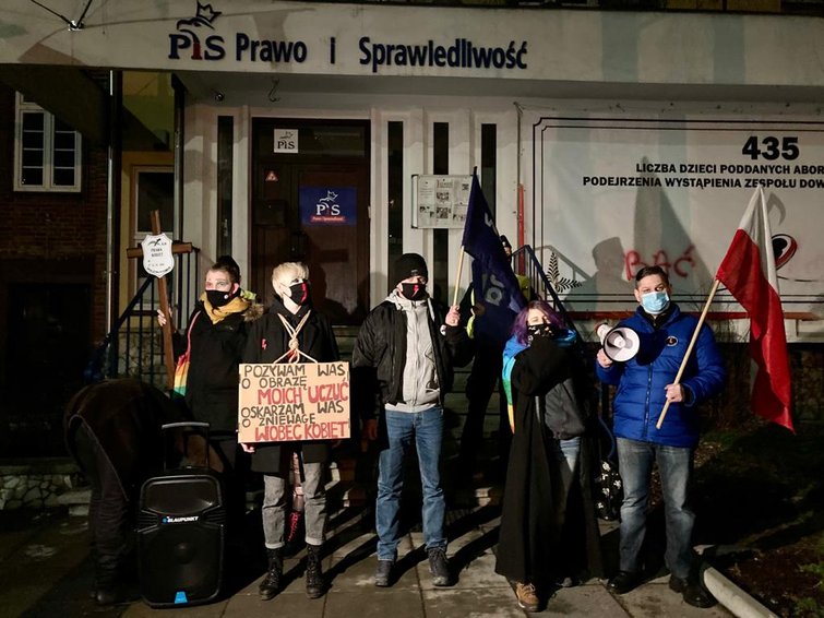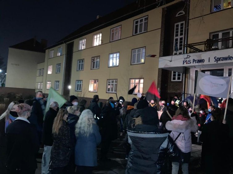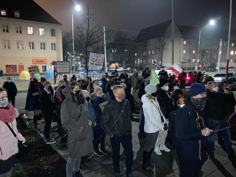 Kilkadziesiąt osób zaprotestowało w środę wieczorem przed siedzibą Prawa i Sprawiedliwości przy ul Mickiewicza w Szczecinie po ogłoszeniu przez Trybunał Konstytucyjny uzasadnienia do wydanego przez niego wyroku ws. aborcji z 22 października 2020 r.