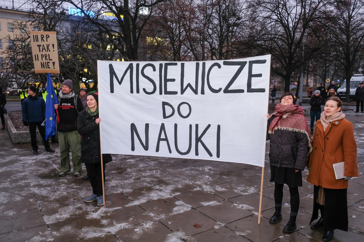 Misiewicze do nauki? Co za brednie przecież ci co trzymają ten transparent nawt nie maja w 10 % takiej wiedzy jak Misiewicz."Studenci" kompromitują się . hahahaha Widać na jakim poziomie sa te uczelnie z których przyszli "studenci"