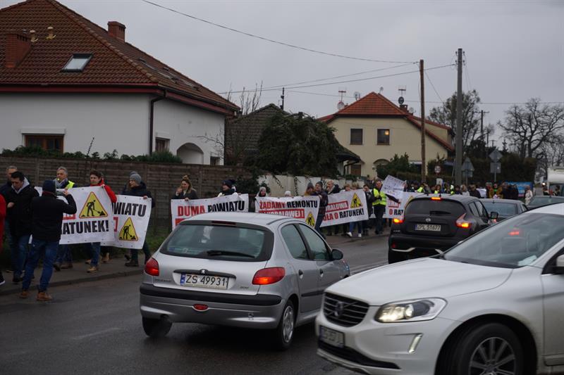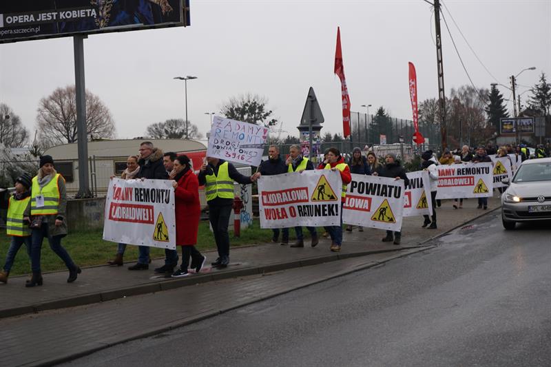 Popieram i przypominam sobie słowa Dudy związkowego,który publicznie mówił,że każdej władzy trzeba wydrzeć z gardła to co społeczeństwu się należy.Dokładnie takie przesłanie powinno mieszkańcom towarzyszyć,bo tu również tylko za sprawą parszywej polityki doprowadzono do tego że latami zaniedbywano remontu tej drogi.Winni są zarówno włodarze Polic jak i Szczecina bo droga przebiega przez obie gminy.Od lat oszukiwani są i mamieni obietnicami mieszkańcy.Droga przeryta przeorana z płyt betonowych pozostałość po licznych budowach-nie spełnia jakichkolwiek norm i zagraża bezpieczeństwu.Ale co tam-każdy z wymienionych ma to w głębokim poważaniu.Oni tu ani nie mieszkają ani nią do pracy nie dojeżdżają.Skoro więc tak,słuszne to decyzje o domaganiu się po tylu latach wyczekiwania i obietnic-realizacji.Górnicy czy stoczniowcy wiedzą jak z władzą się rozmawia,boją się ich jak ognia,czas postępować identycznie.Siedząc cicho,grzecznie i pokornie wysłuchując bredni płynących z ust polityków droga sama nie powstanie,nie zbuduje się.