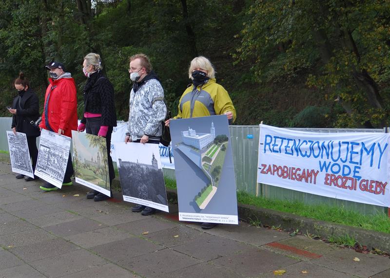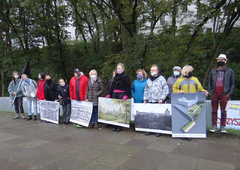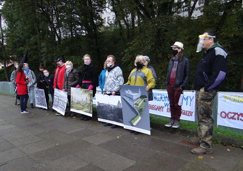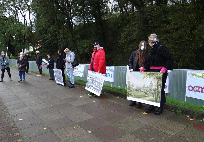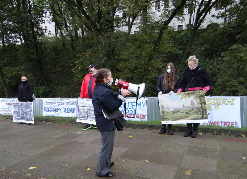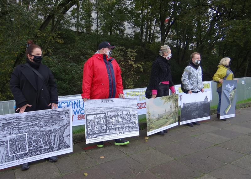 - W niespełna rok po wycięciu pierwszych - 65 - drzew z przyzamkowej skarpy, doszło do traumatycznej katastrofy budowlanej: jeden z filarów zamku zapadł się o trzy kondygnacje. Byliśmy przekonani, że to zatrzyma realizację fatalnego pomysłu usunięcia drzew i zabetonowania tarasami przyzamkowej skarpy. Niestety. Choć teraz świadomość społeczna jest już większa i ludzie otwarcie walczą w obronie zieleni, służby podległe marszałkowi znów szukają pretekstu, aby wizerunkowo uzasadnić barbarzyński pogrom drzew zaplanowany dla zamku i Starego Miasta - mówiła dr Helena Freino w trakcie protestu, jaki w niedzielne (18 października) południe zorganizowała Społeczna Straż Ochrony Zieleni Szczecina.