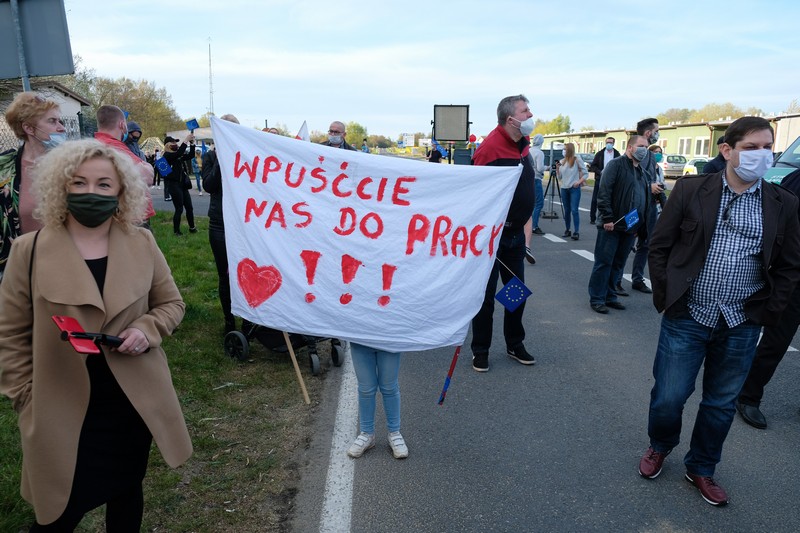„Wpuśćcie nas do pracy! Wpuśćcie nas do domu!” - pod takim hasłem na przejściach granicznych z Niemcami odbyły się w piątek (24 kwietnia) wieczorem protesty przeciwko obostrzeniom na granicy. Największe pikiety odbywały się po stronie niemieckiej. Natomiast w przygranicznym Rosówku kilkudziesięciu mieszkańców z uwagi na zakaz zgromadzeń w naszym kraju w symboliczny sposób zamanifestowało swój sprzeciw wobec obowiązkowej dwutygodniowej kwarantannie, która dotyczy również transgranicznych pracowników.